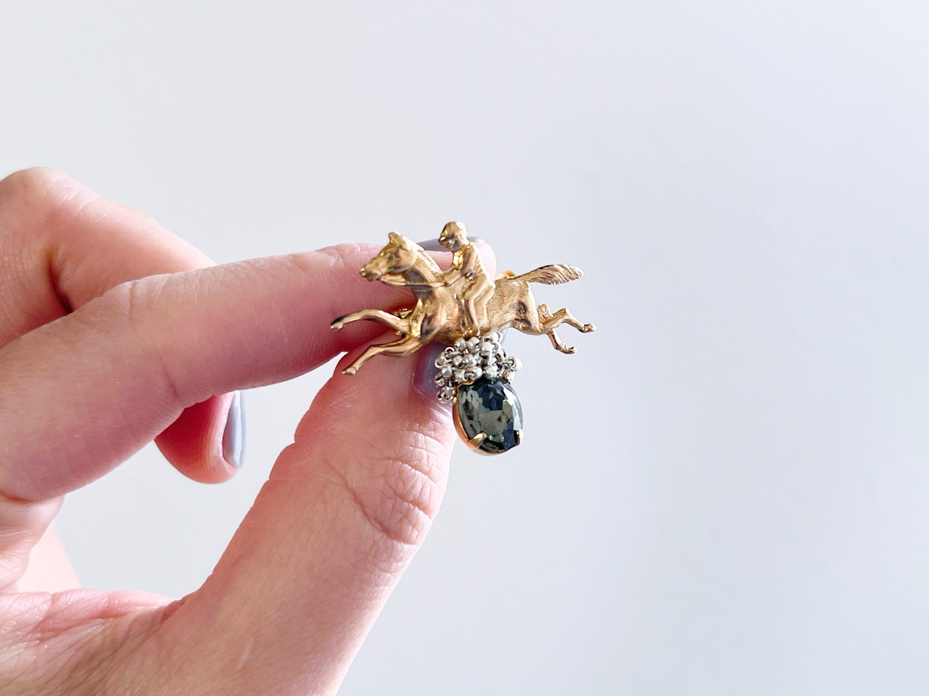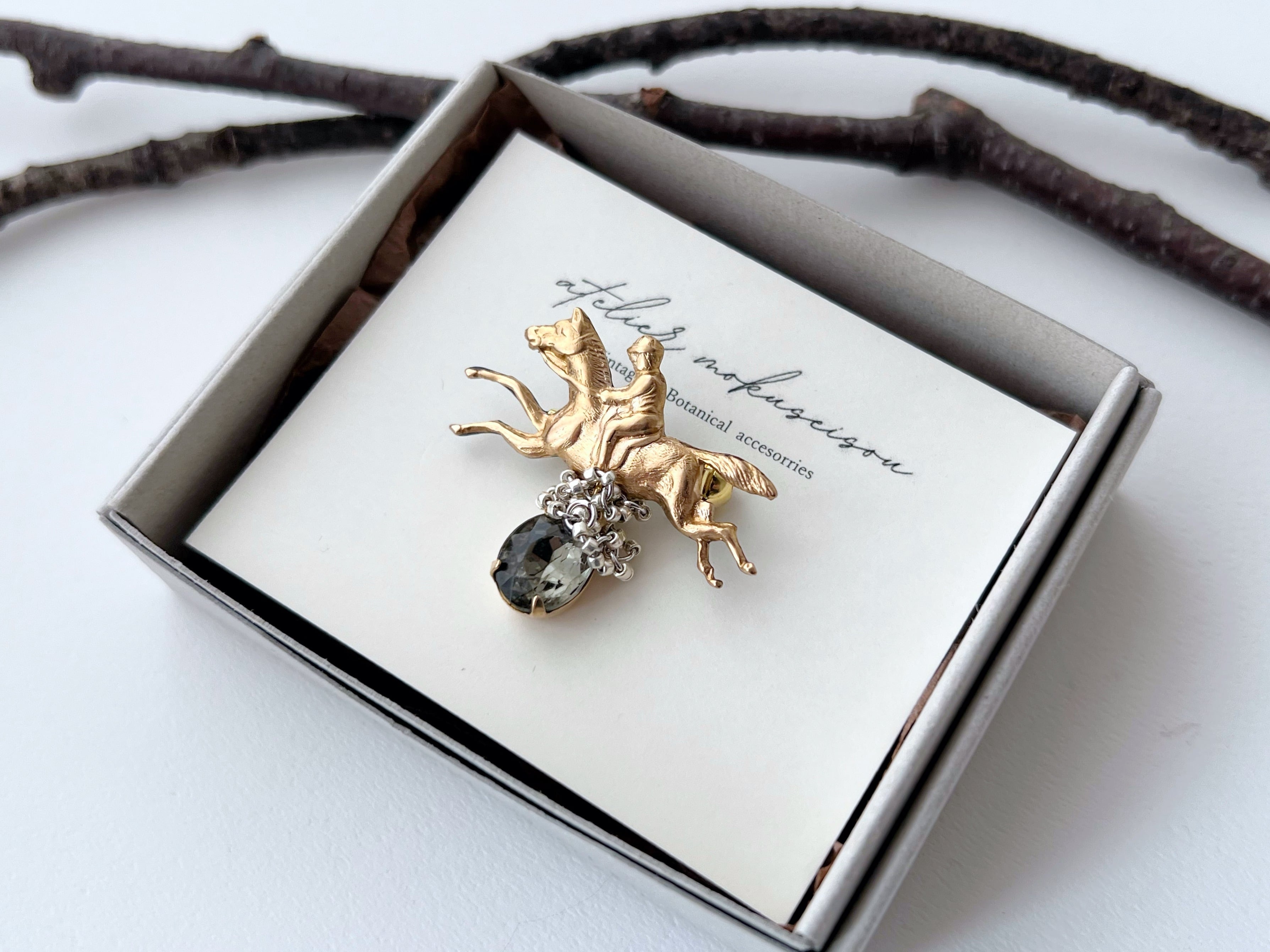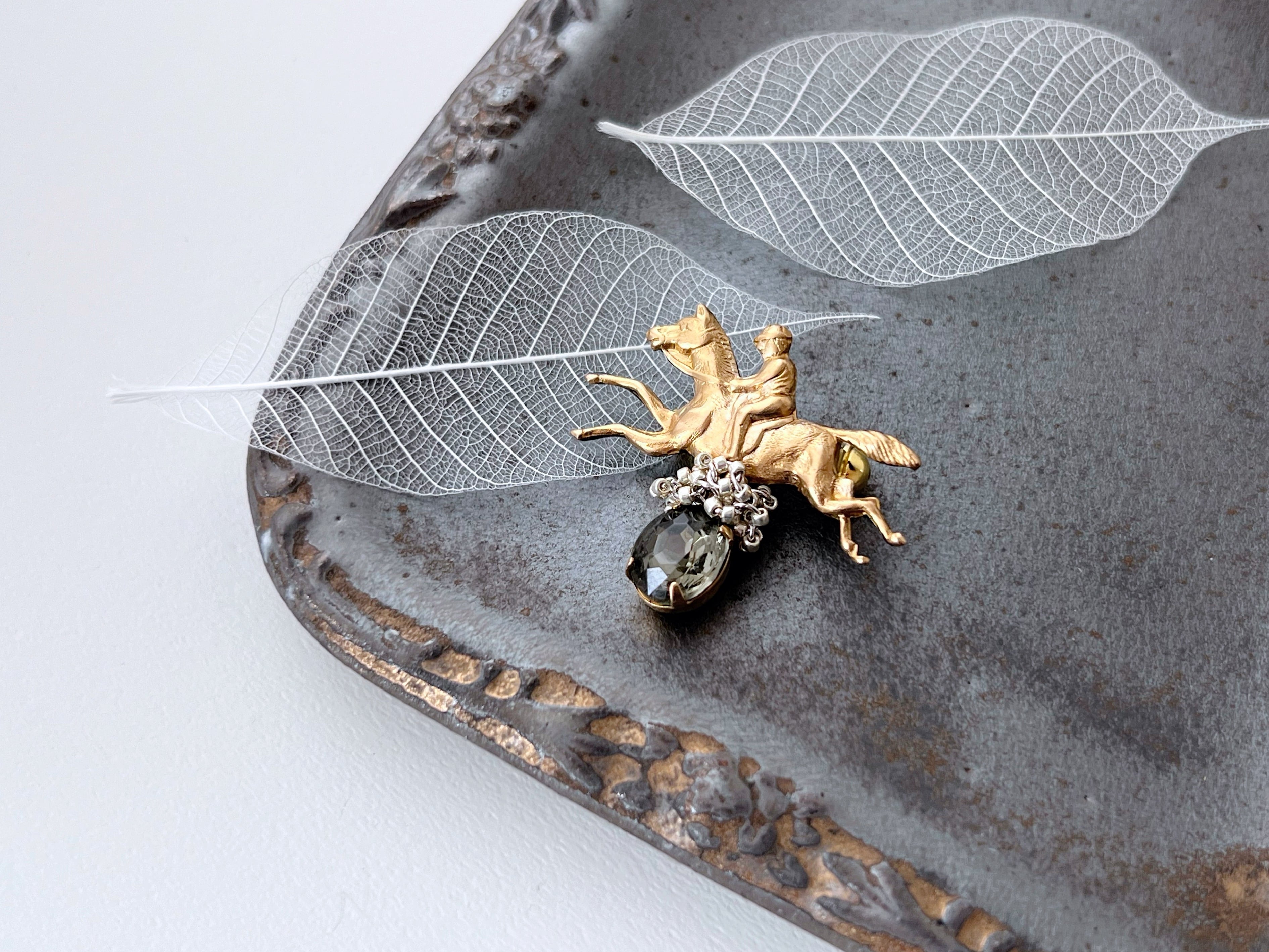 【 ami 】馬とジョッキーのミニブローチ/真鍮/ヴィンテージガラス/