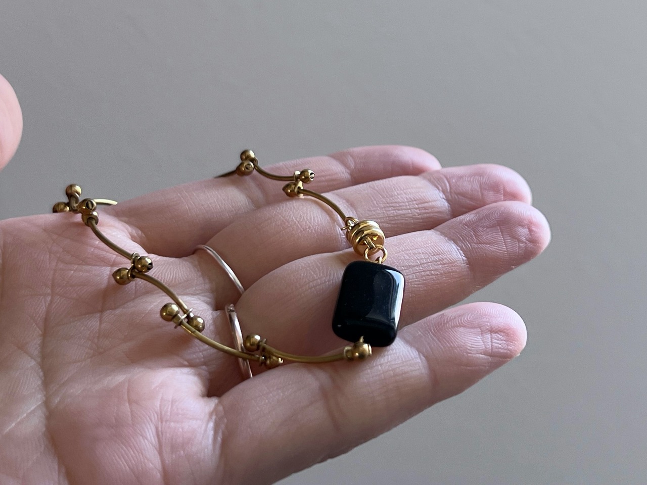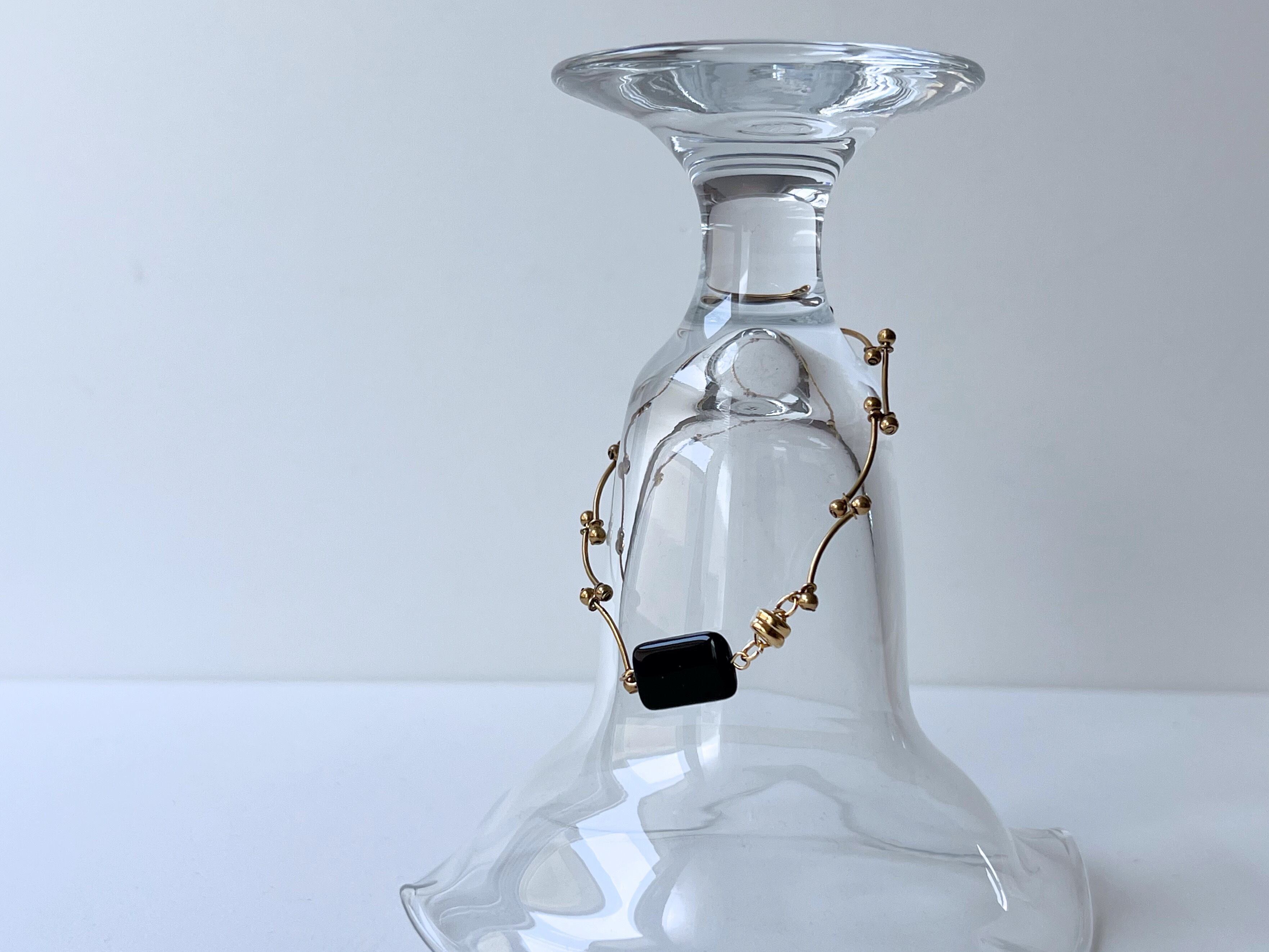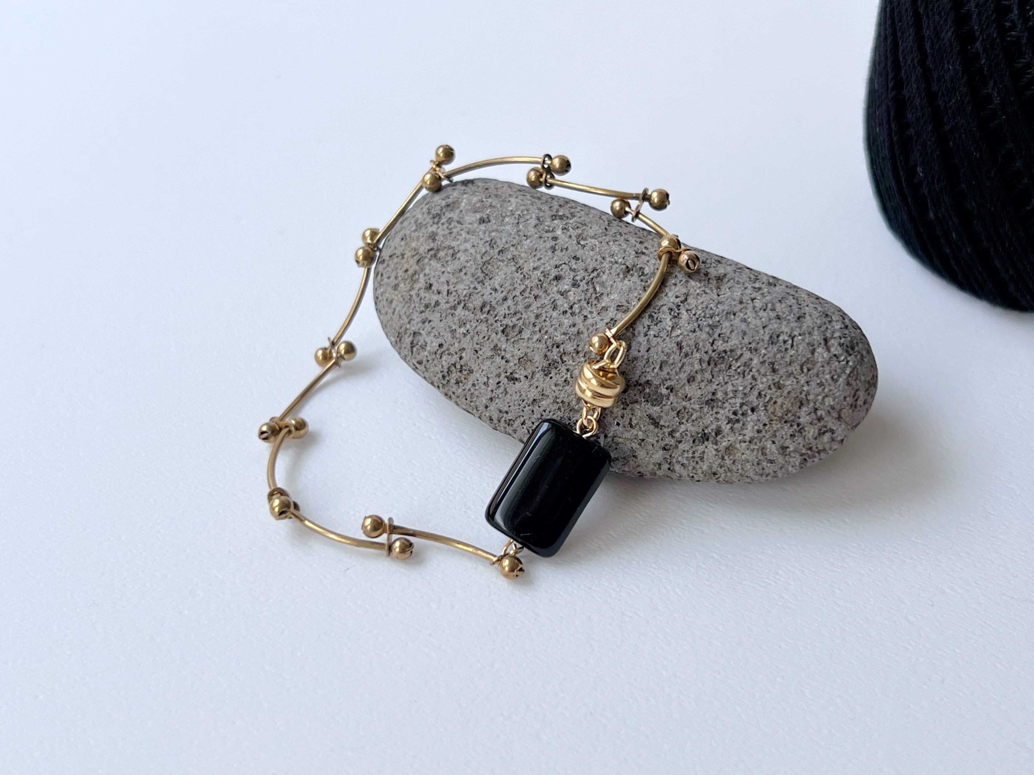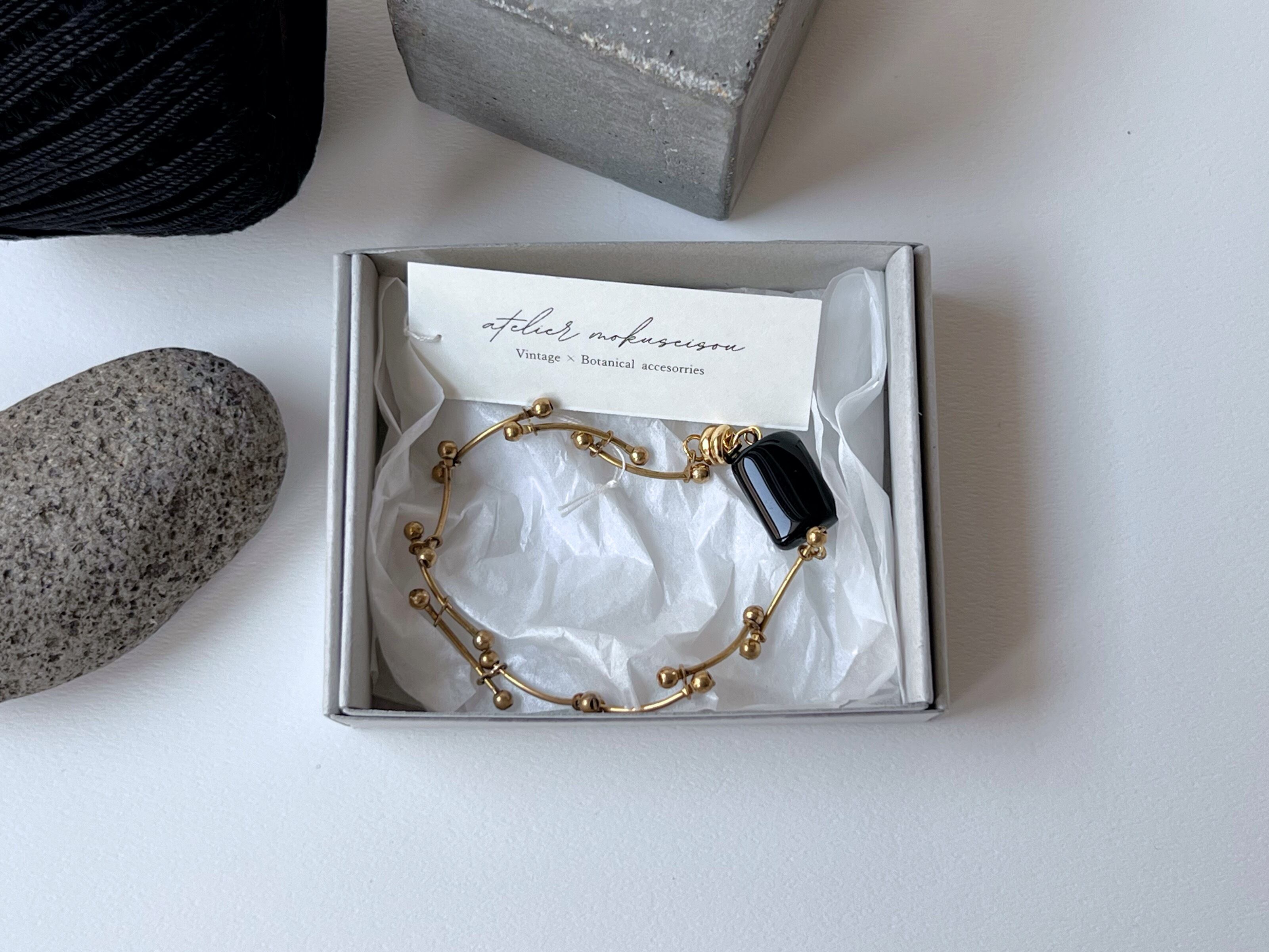 【 geometly 】ヴィンテージ真鍮チェーンのブレスレット/黒/アンティーク/上品/ガラス/マグネット