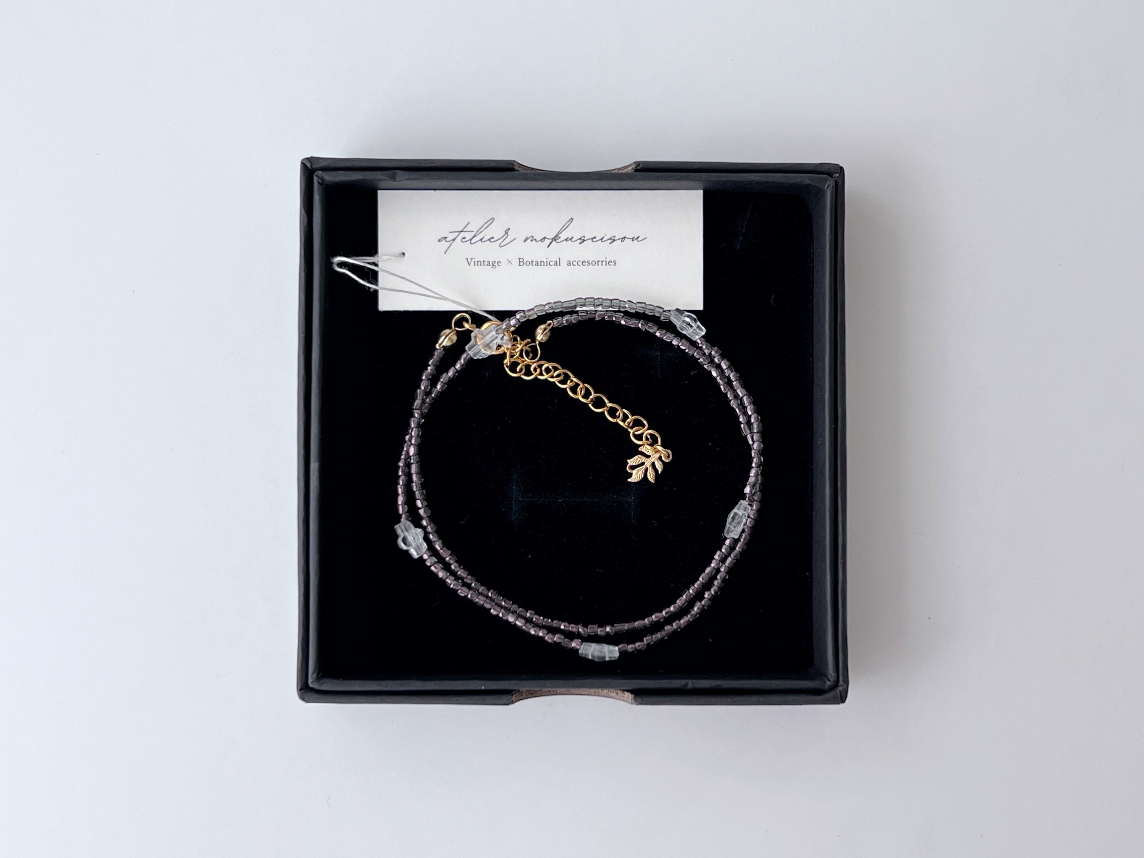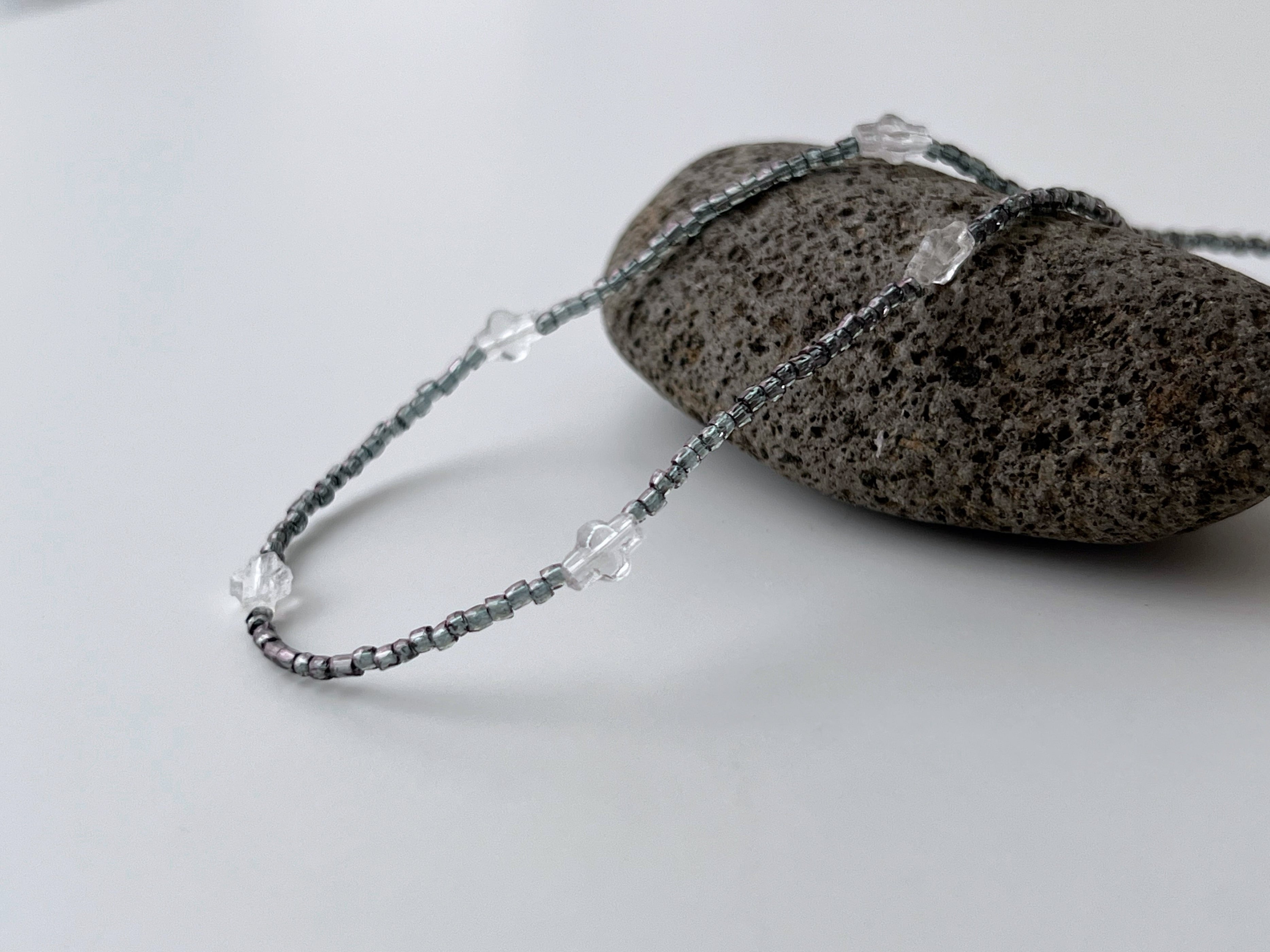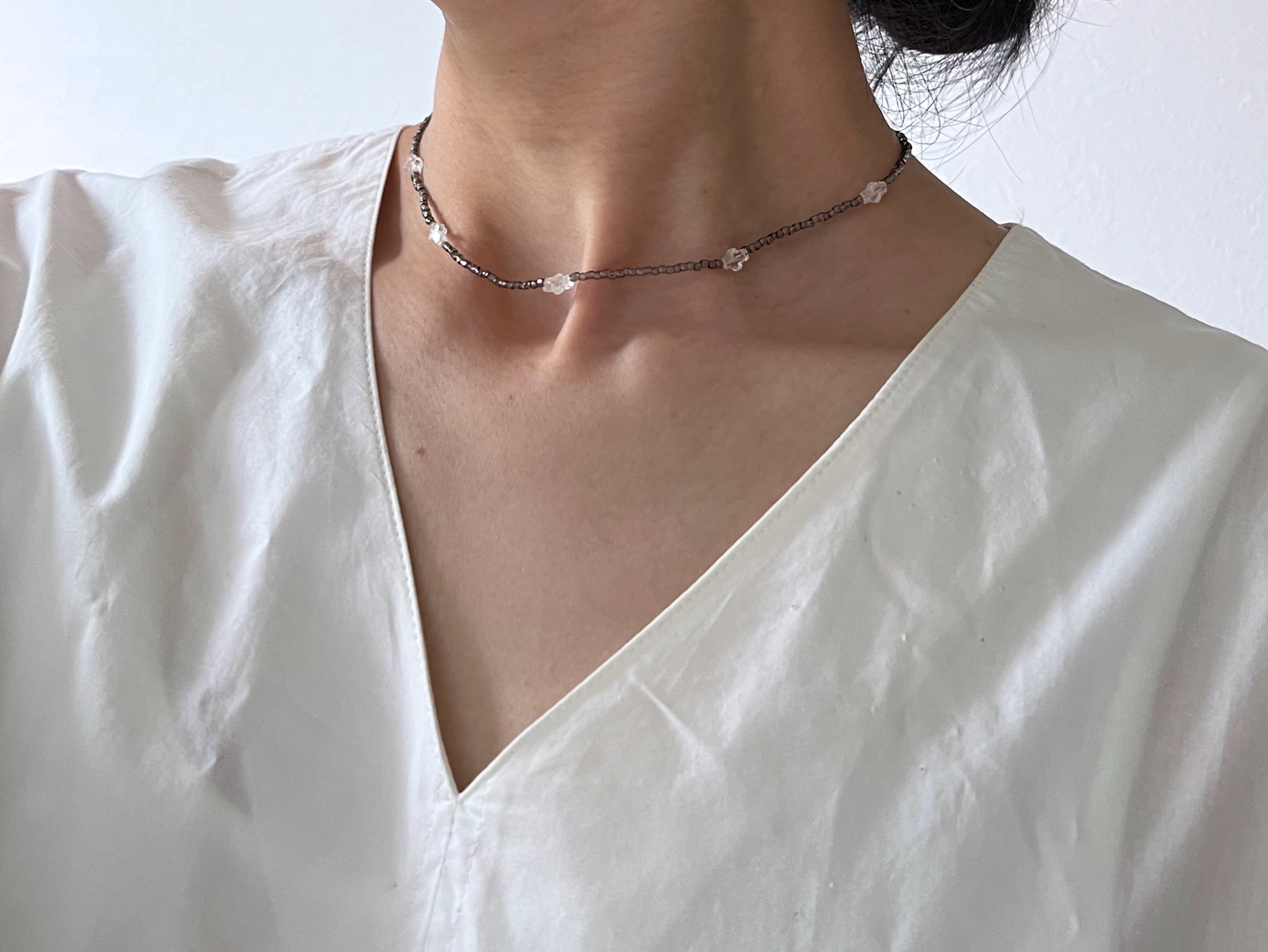 【 vintage beads choker 】ヴィンテージシードビーズのチョーカーネックレス/グレー/クリア/フランス