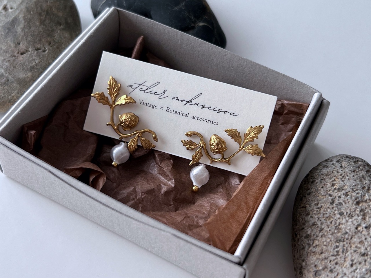 ピアス/真鍮/ボタニカル/植物/お花/パール/フォーマル