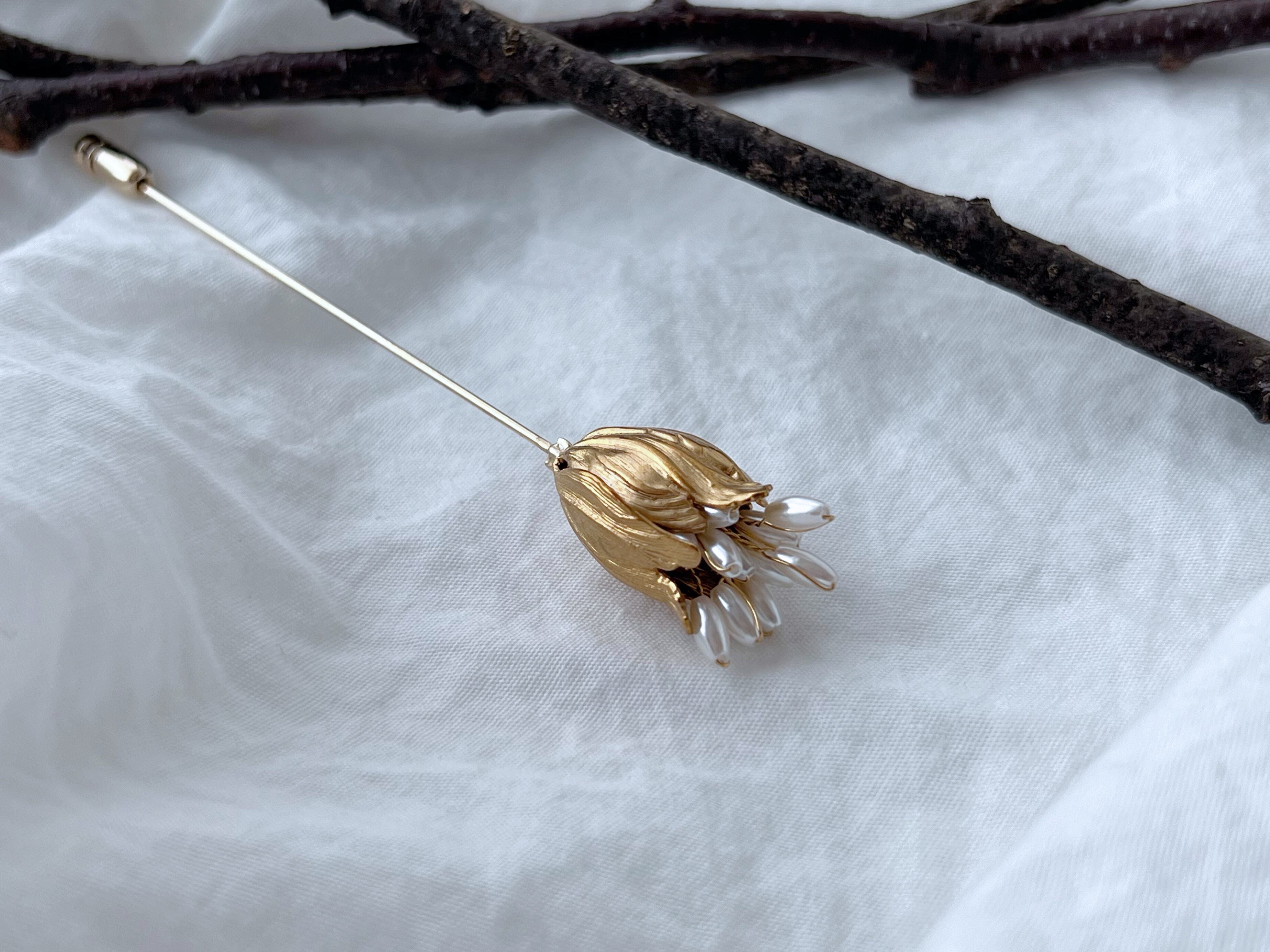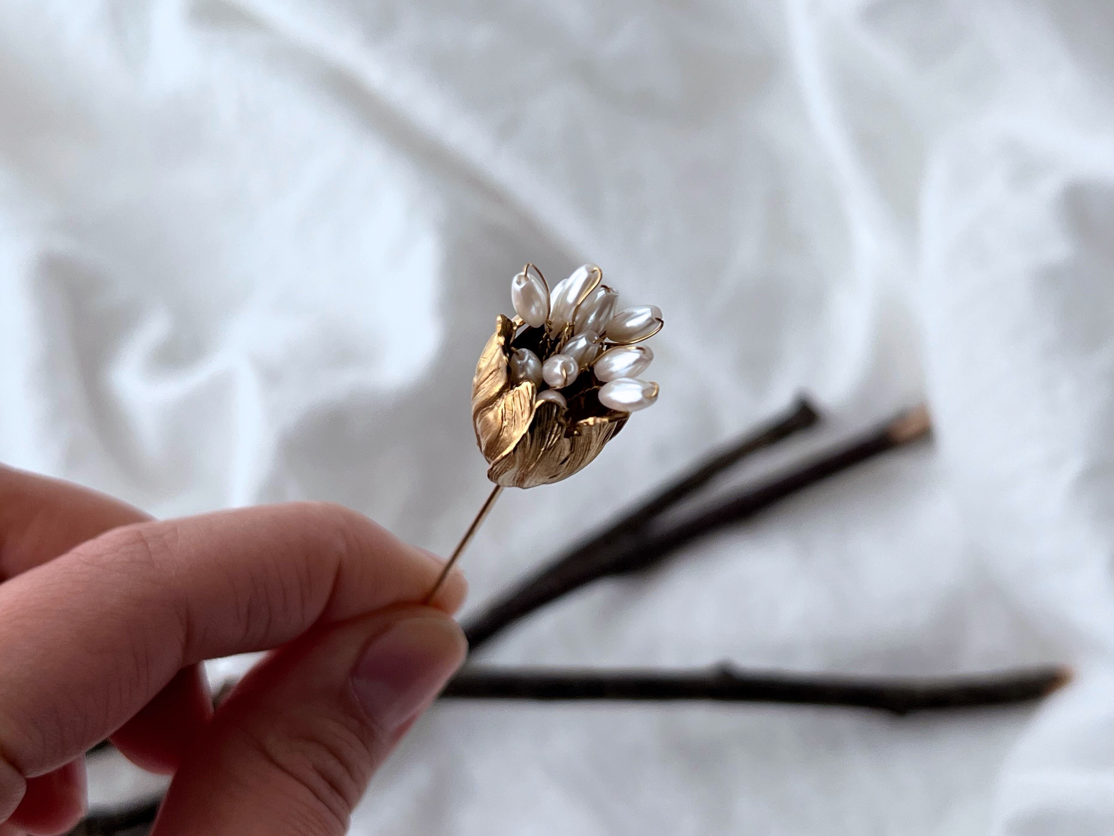 【 bourgeon 】蕾のストールピン/ブローチ/ヴィンテージ/ボタニカル/ギフト/パール/お花