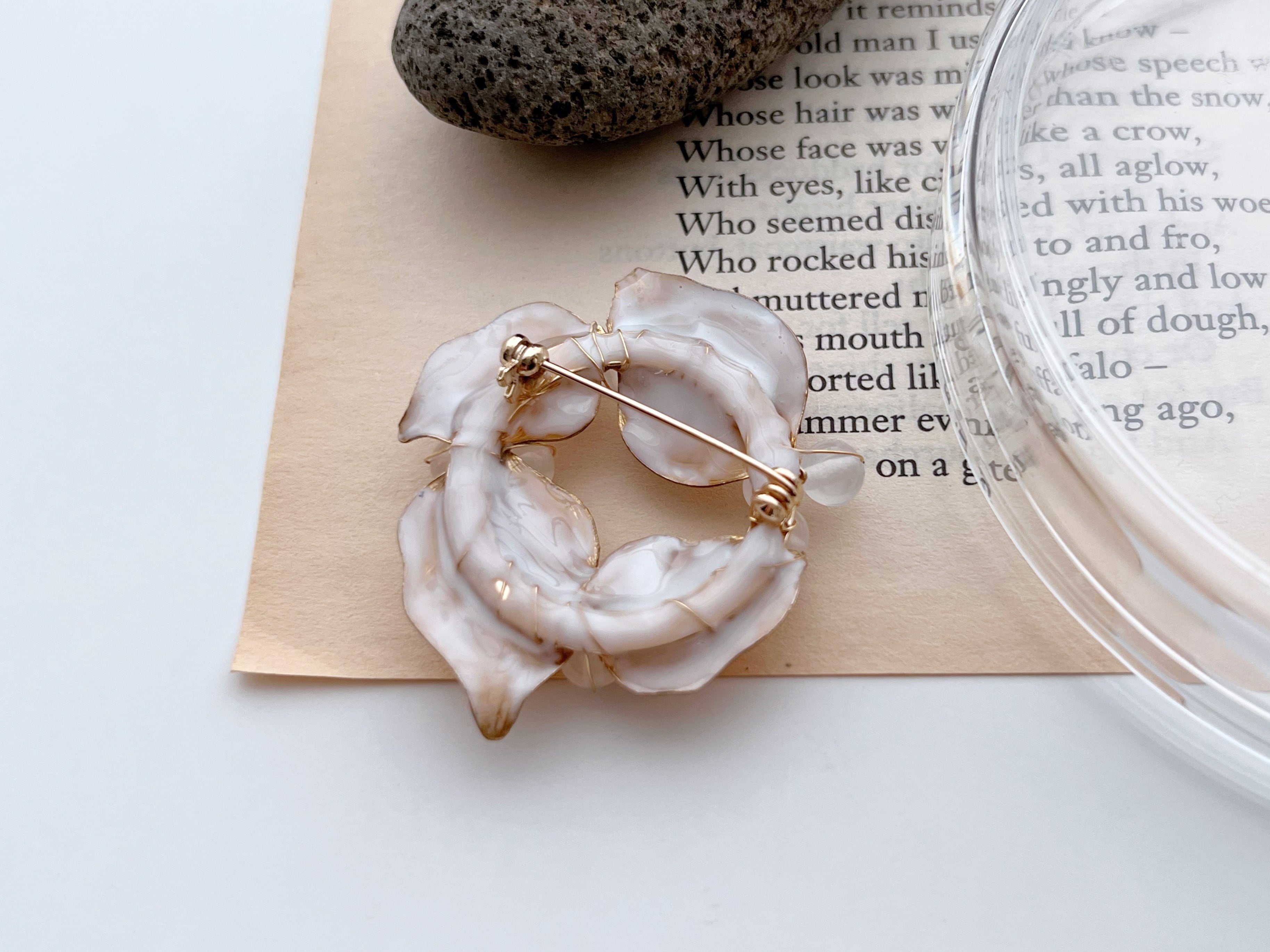 素材/真鍮製リーフスタンピング、ヴィンテージグラスビーズ、レジン(ブローチ部分その他金属)