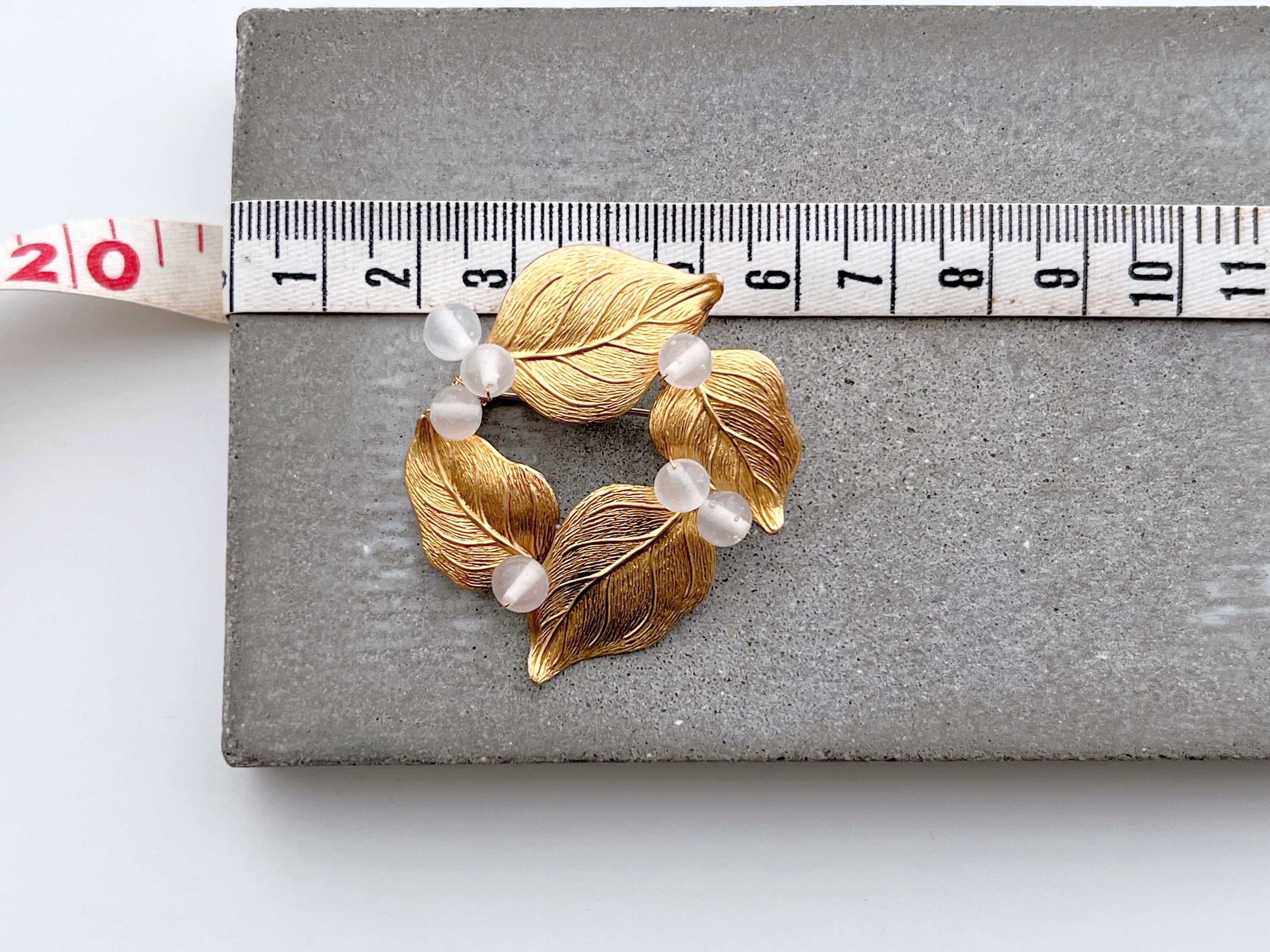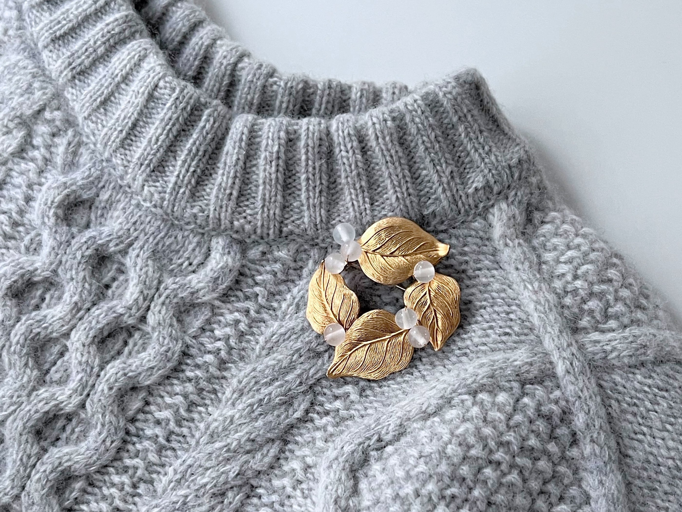 【 rosée 】真鍮リーフと朝露のブローチ/真鍮/ボタニカル/フォーマル/ギフト/母の日/ヴィンテージ