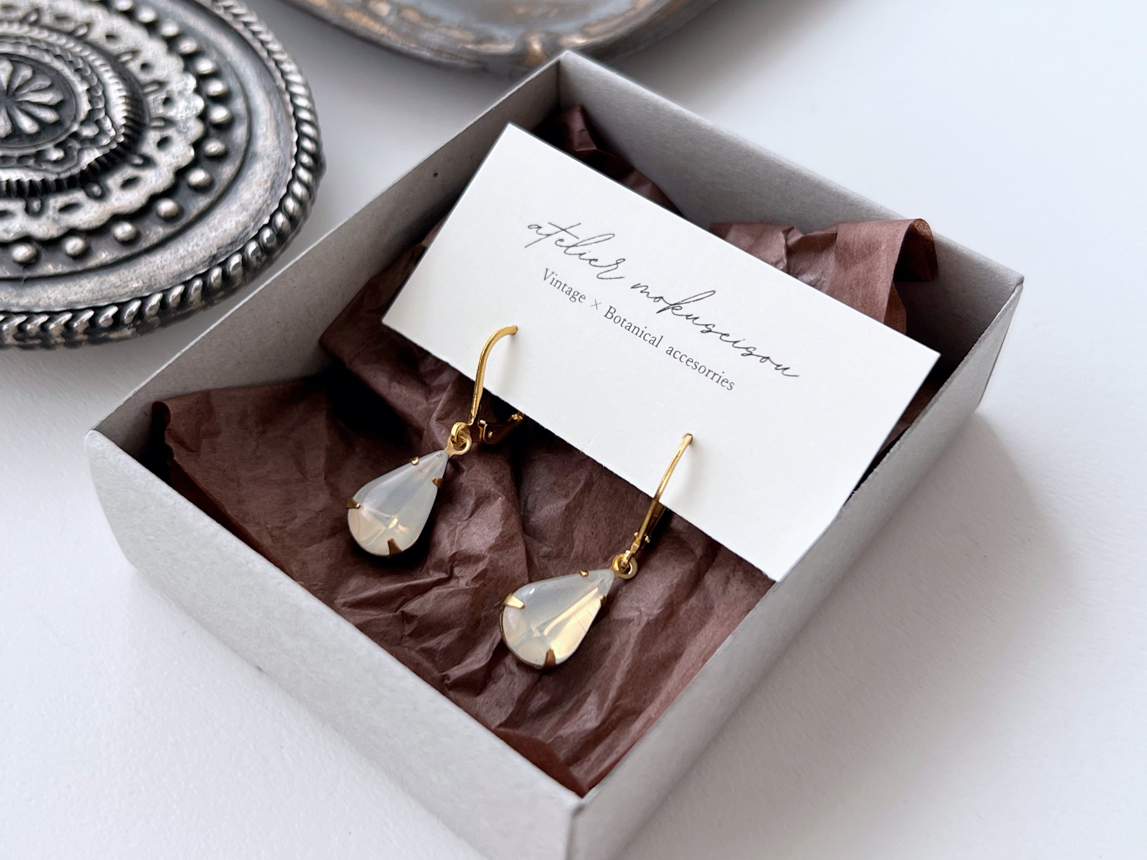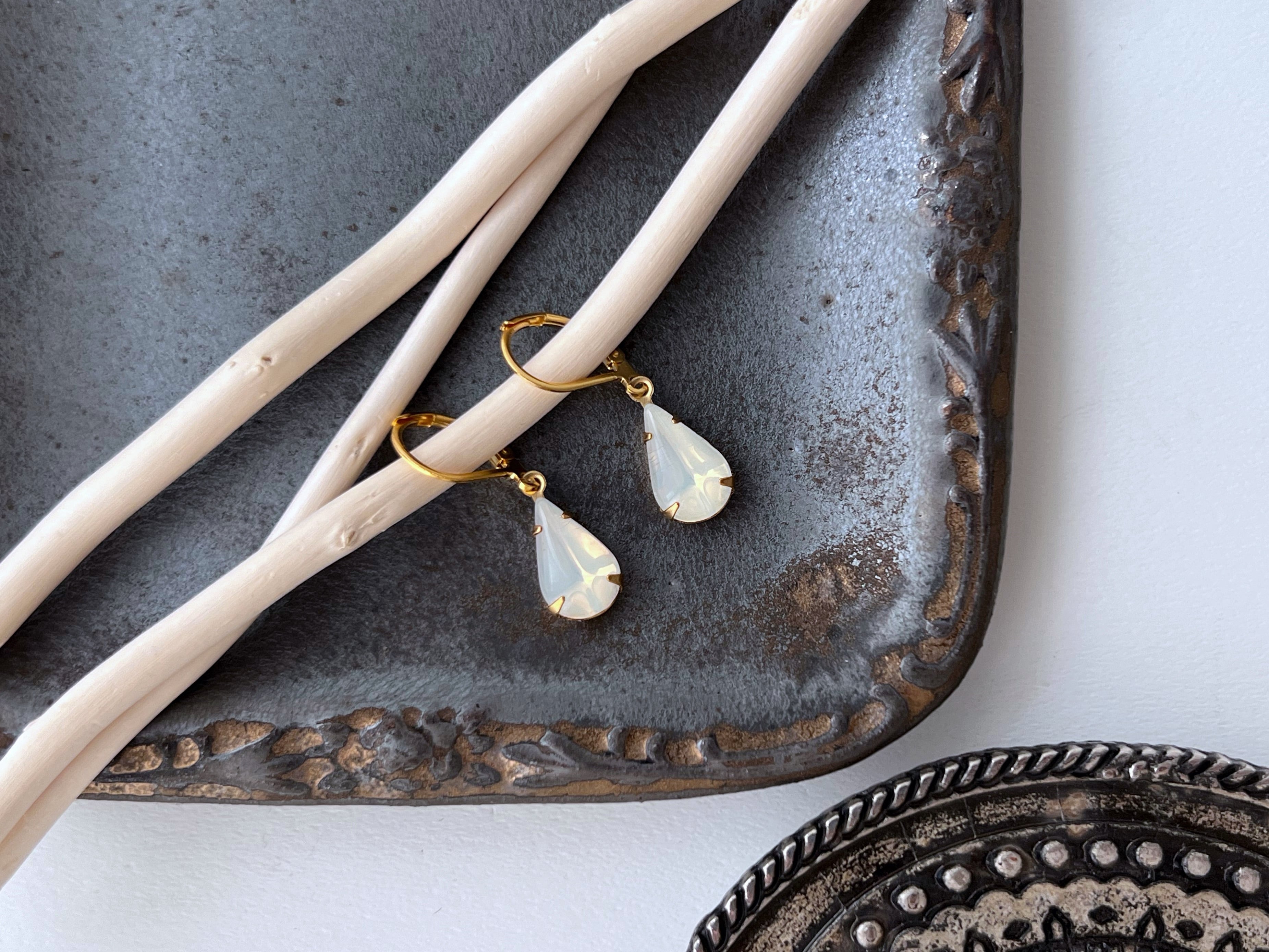【 drops 】ヴィンテージビジューのシンプルなピアス・イヤリング/チェコ/クリアオパール/ドロップ/