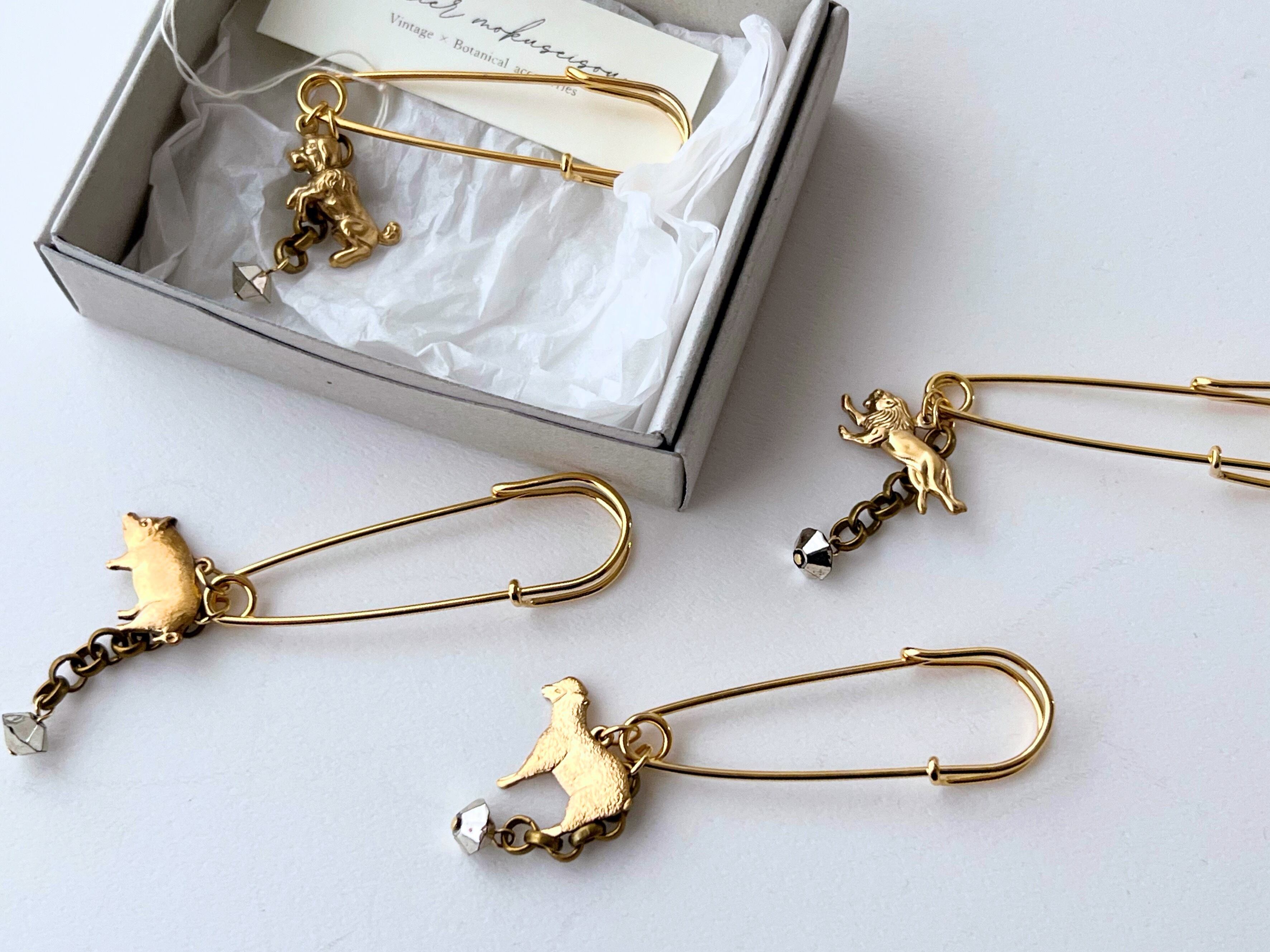 【 chou chou 】真鍮アニマルのストールピン/ブローチ/ヴィンテージビーズ/チェーン/犬/豚/羊/ライオン
