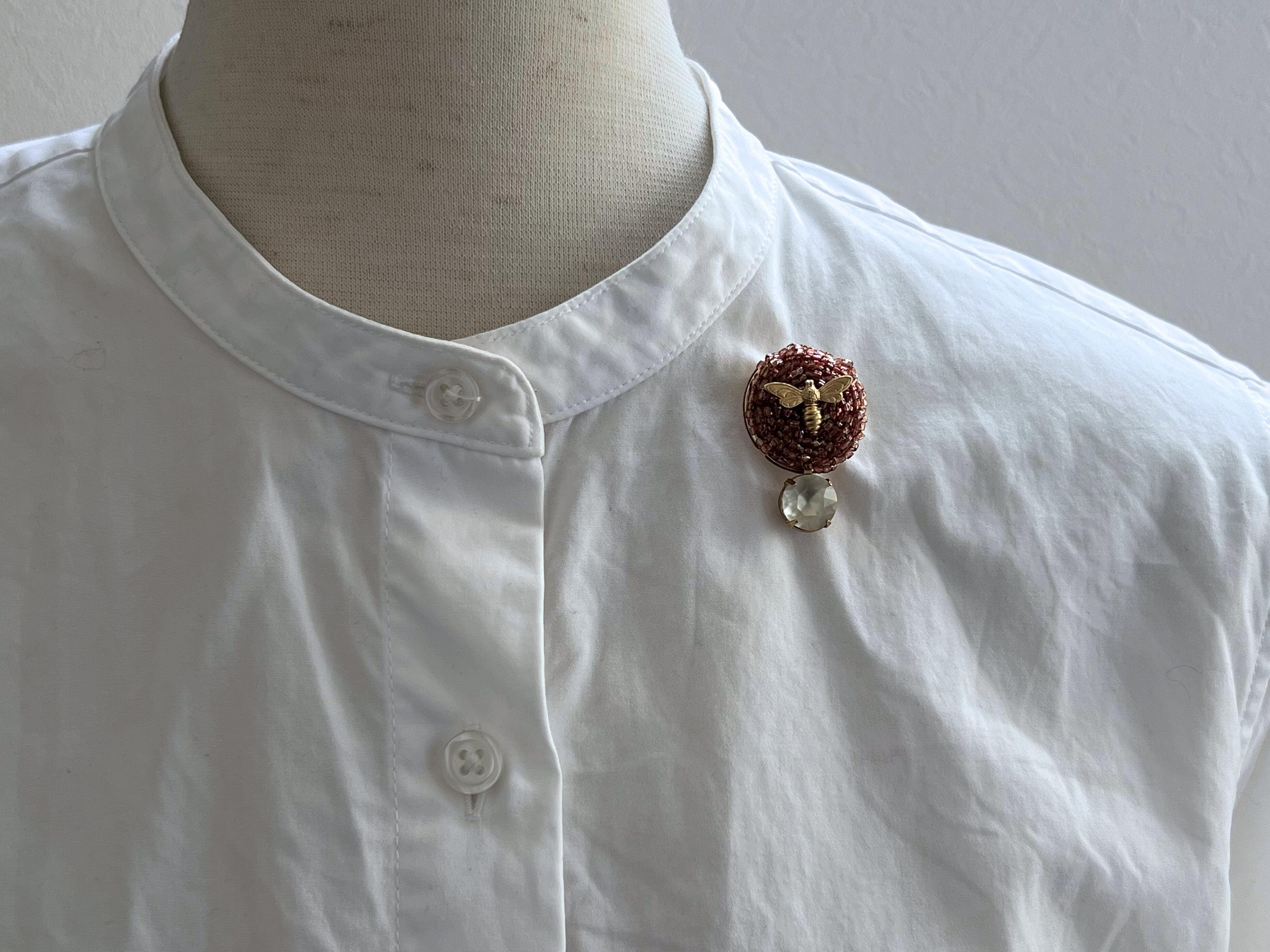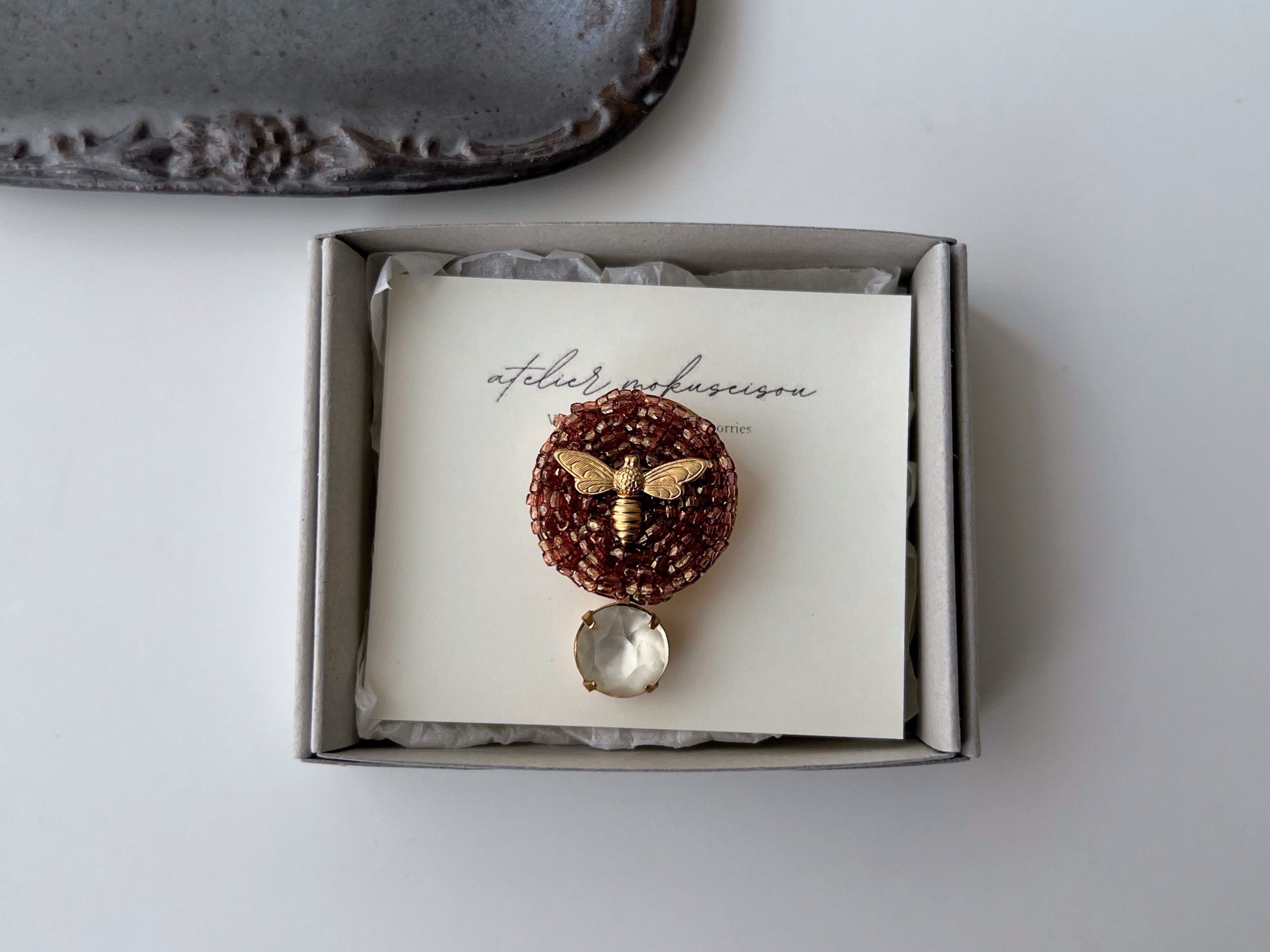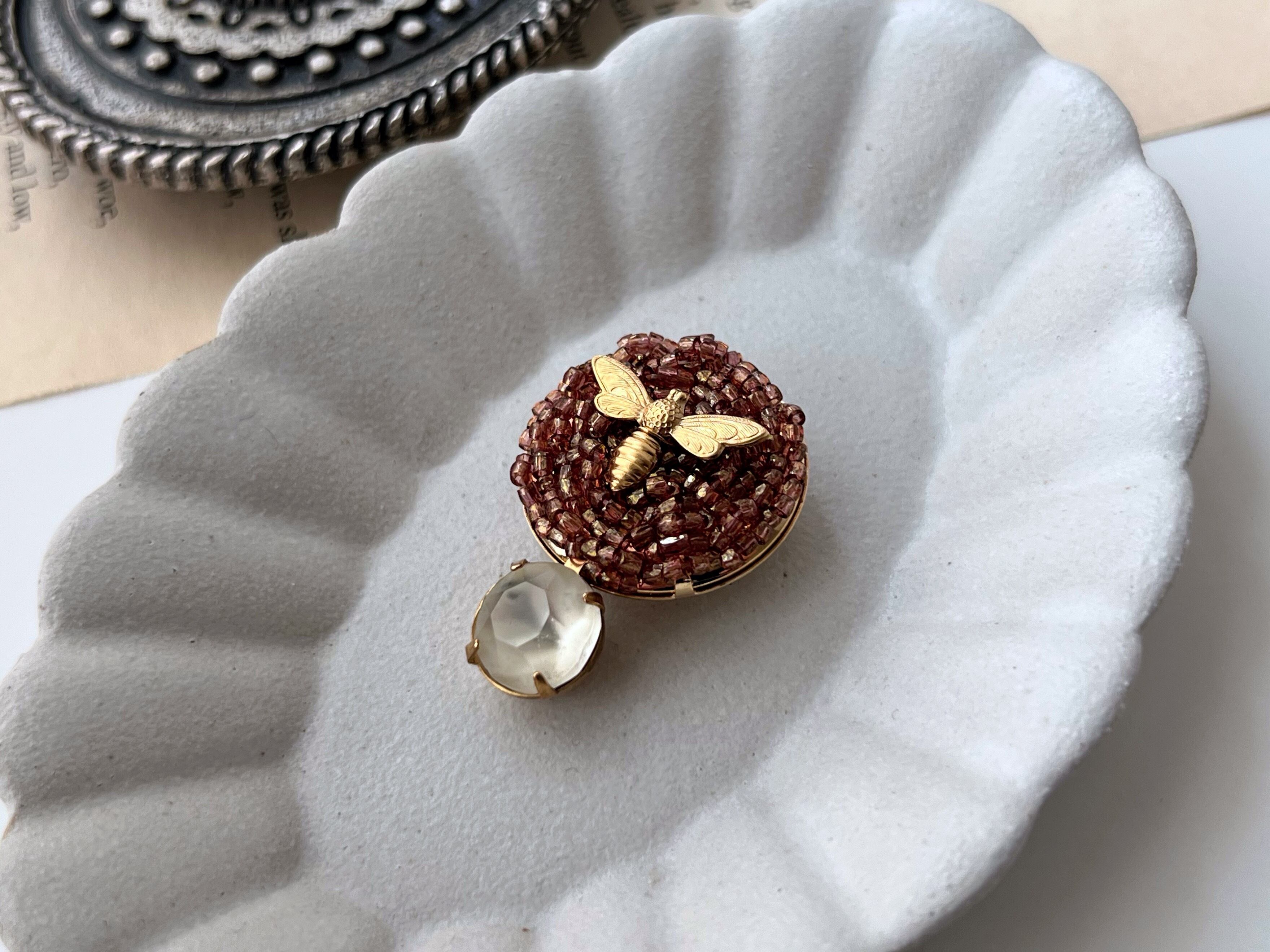 【 terre 】ミツバチとヴィンテージビジューのミニブローチ/真鍮/ガラス/ビーズ/