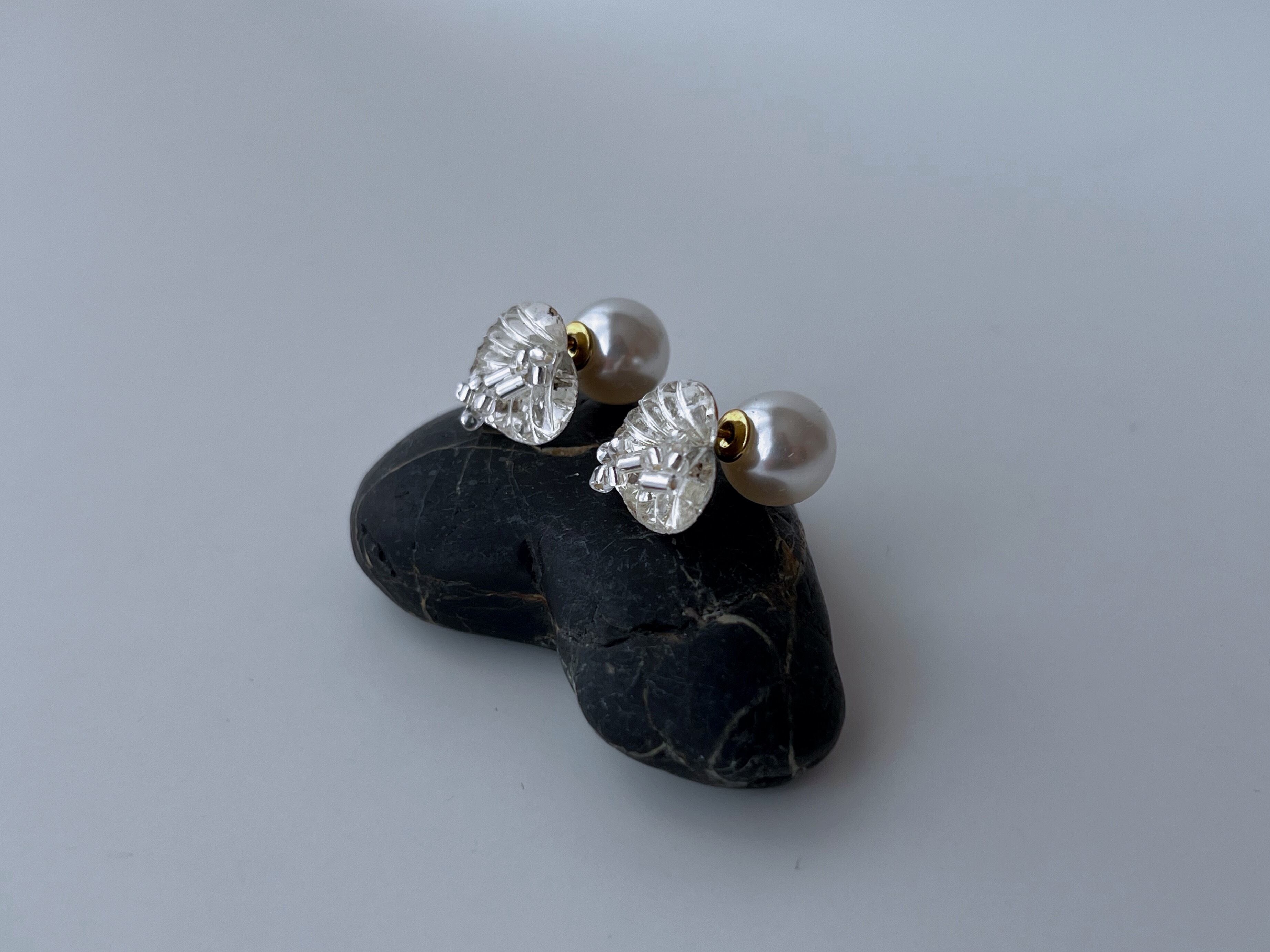 同じくクリアの日本製のガラスシードビーズをあしらった耳飾り。