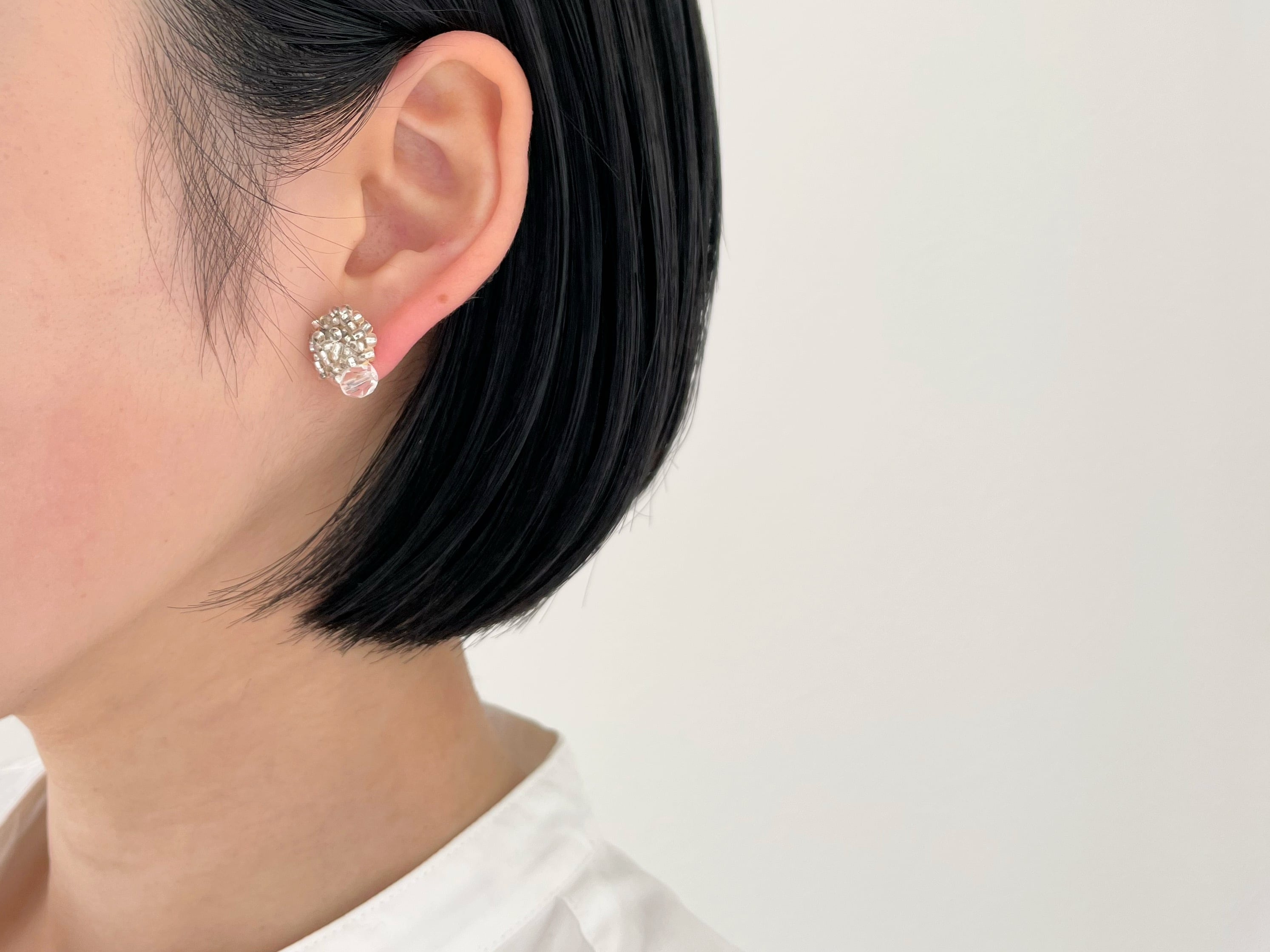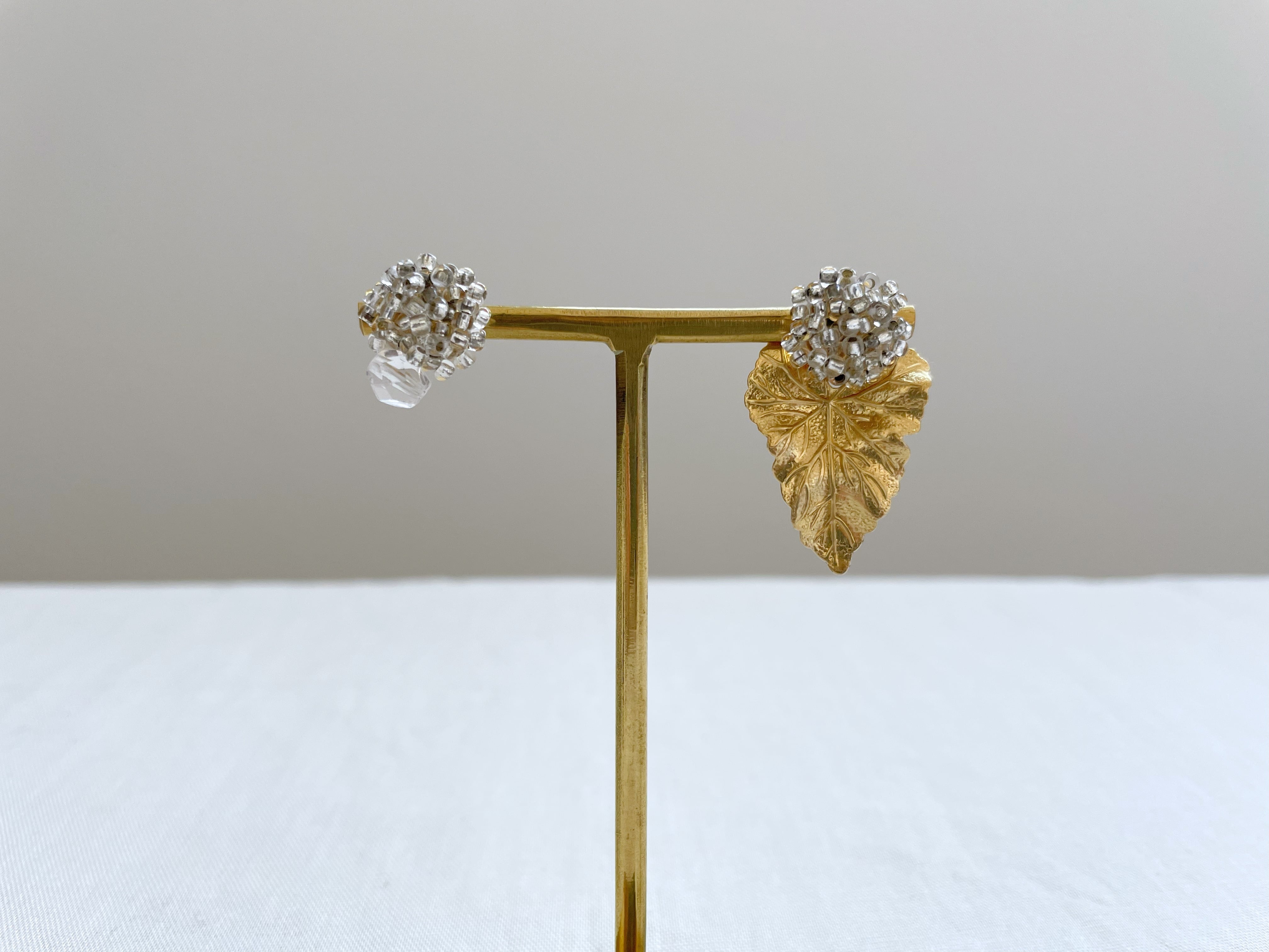 もう片方には朝露のようなクリアビーズを一粒添えた、