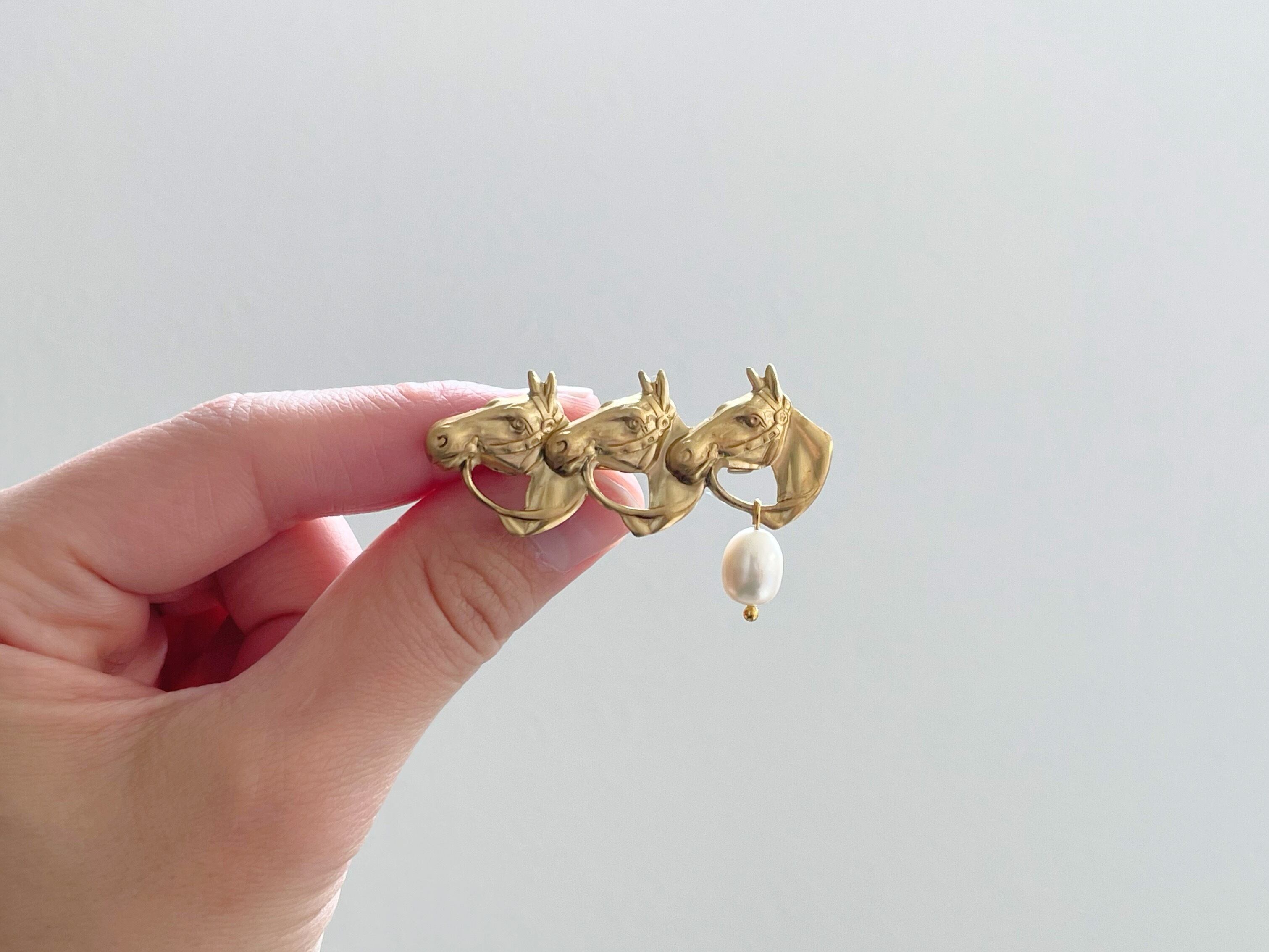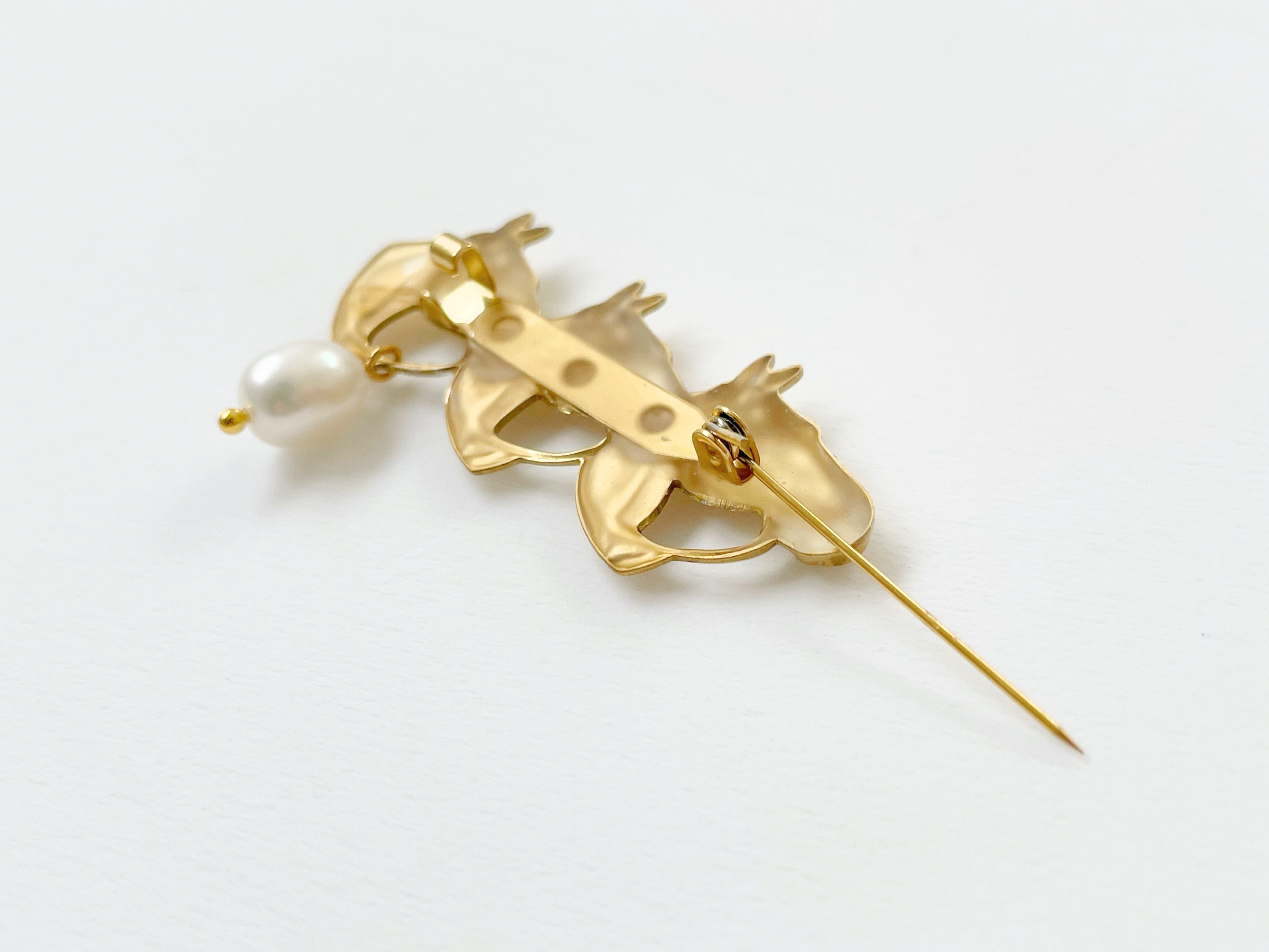 ブローチ/真鍮/淡水パール/馬/ホース/お洒落