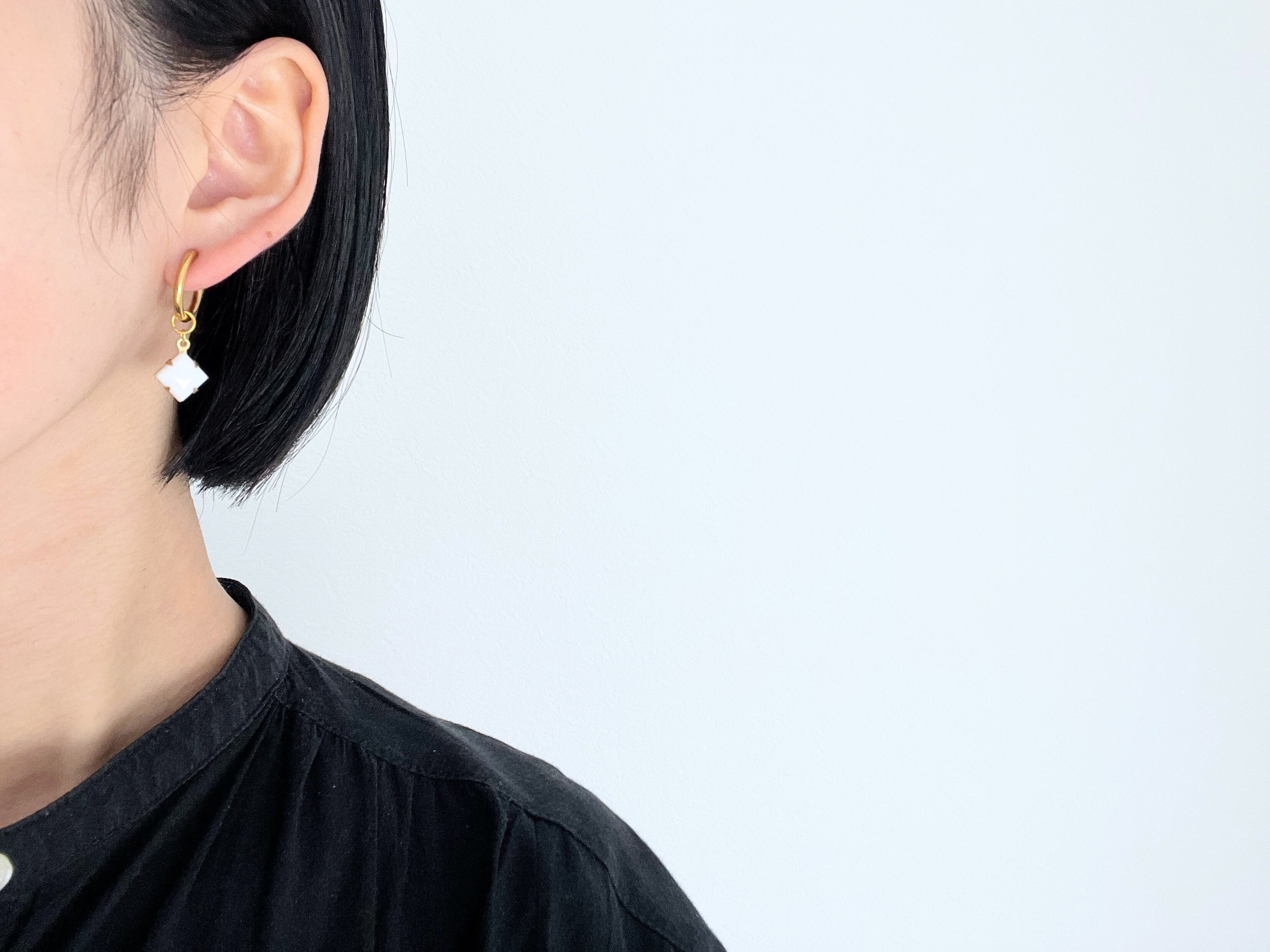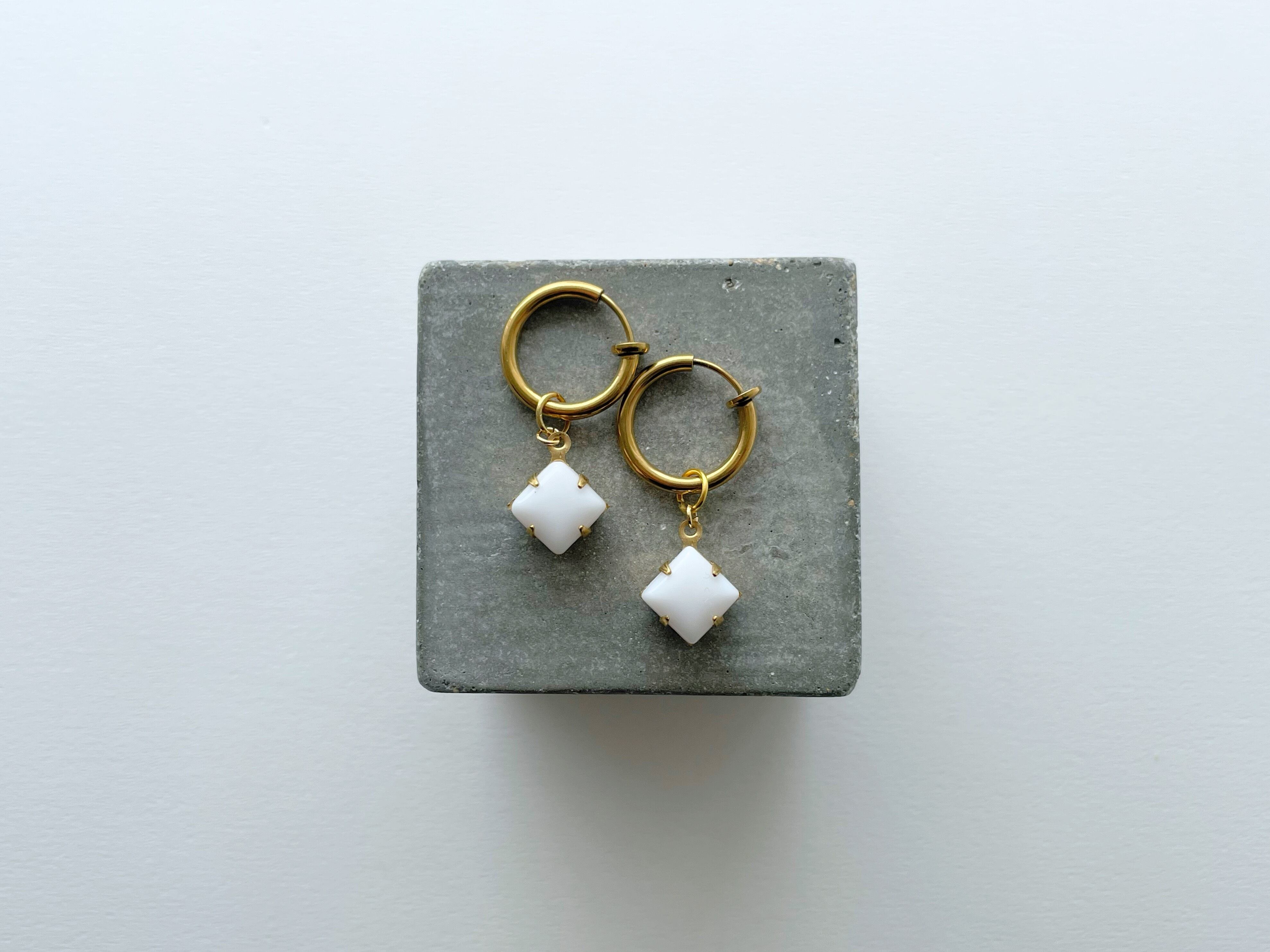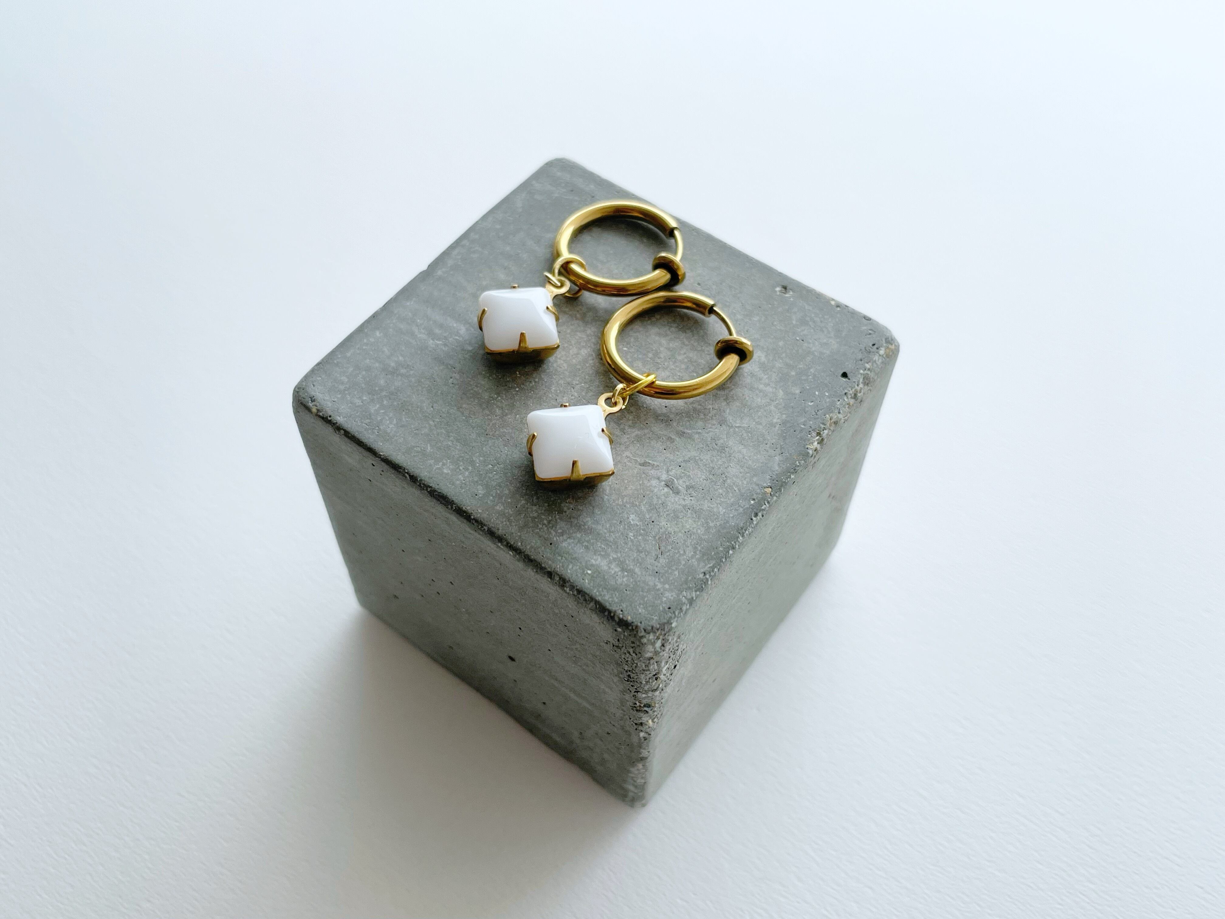 【 drops 】ヴィンテージビジューのシンプルな耳飾り/スクエアホワイト