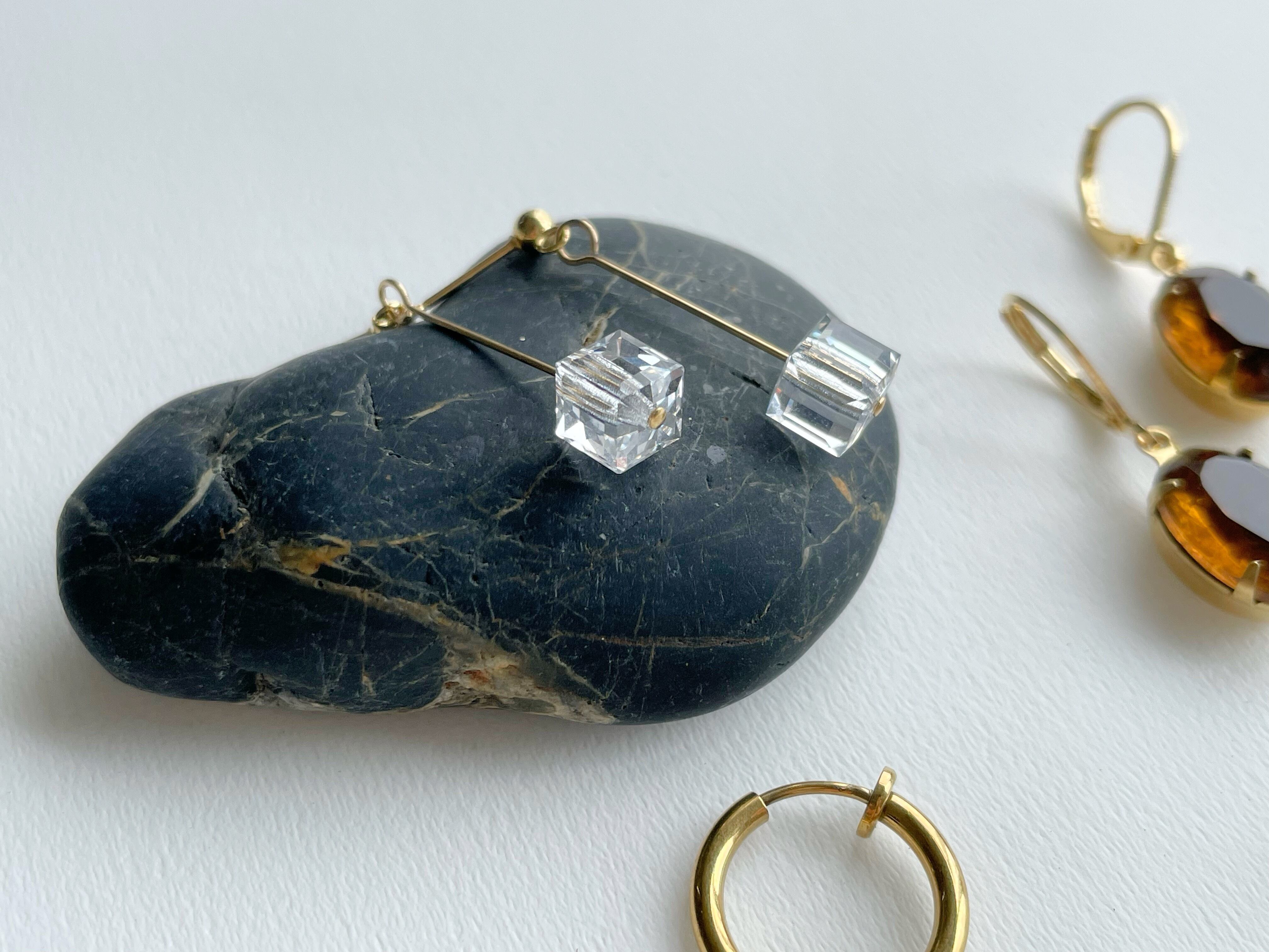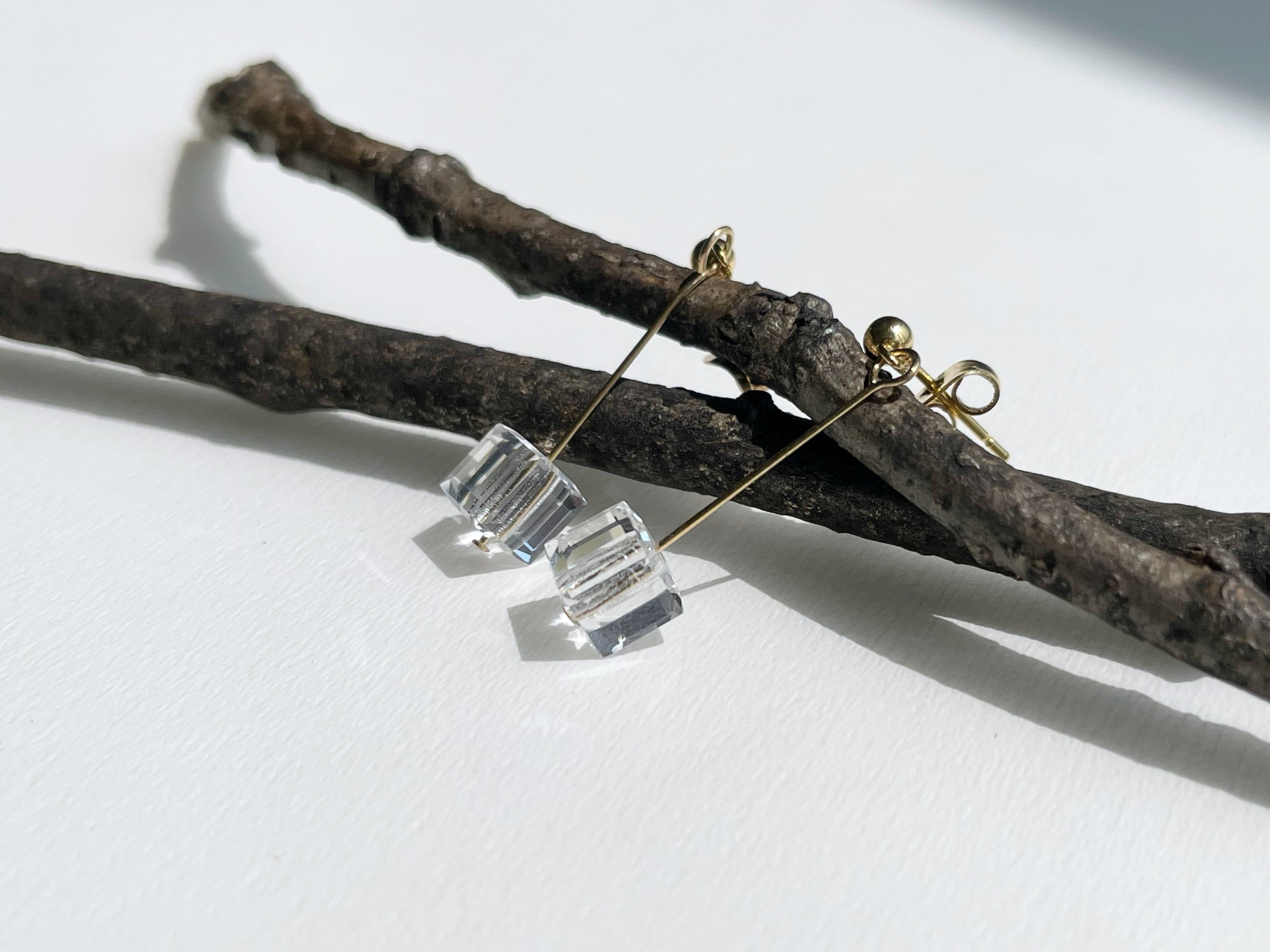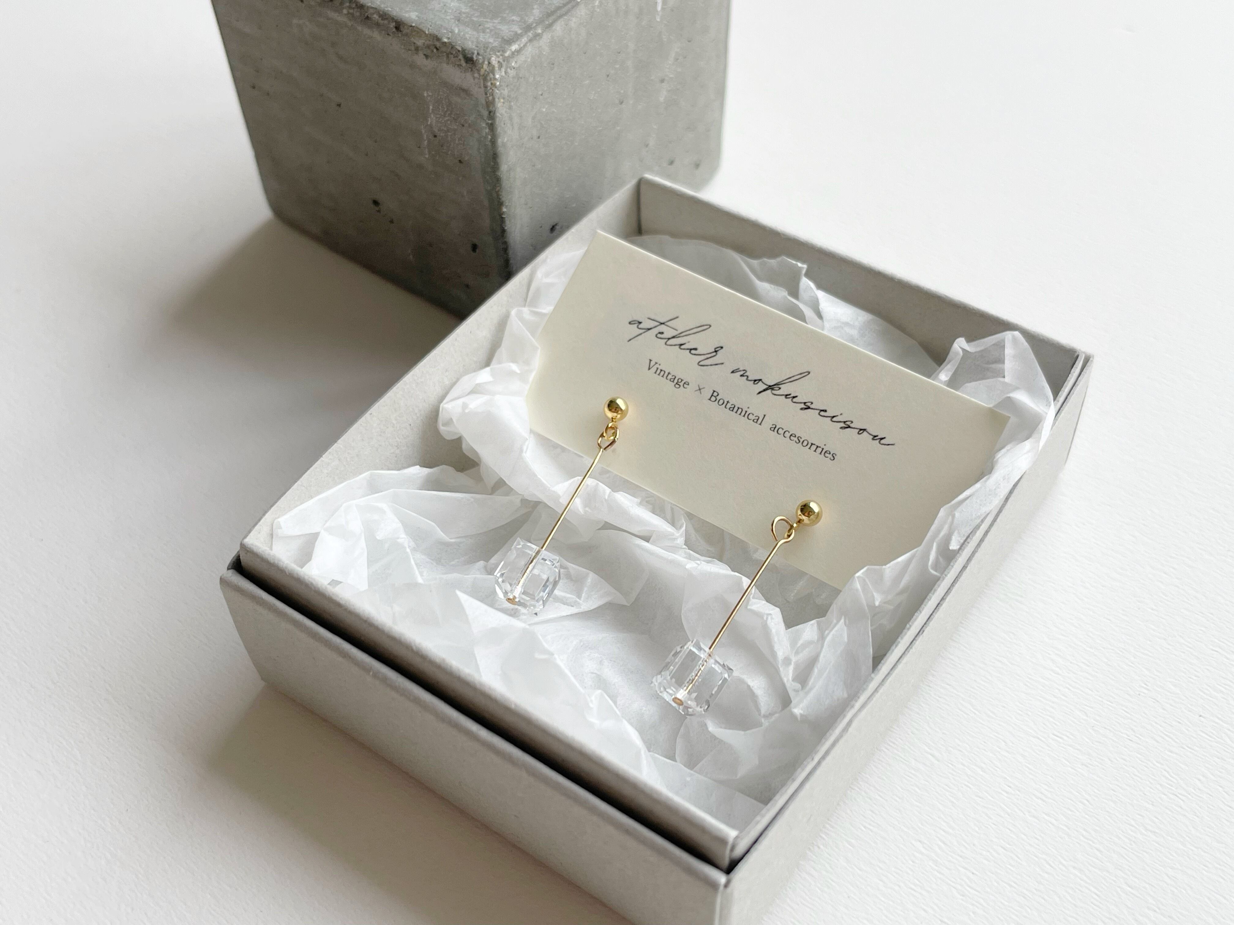 【 drops 】ヴィンテージビジューのシンプルな耳飾り/クリスタルキューブ