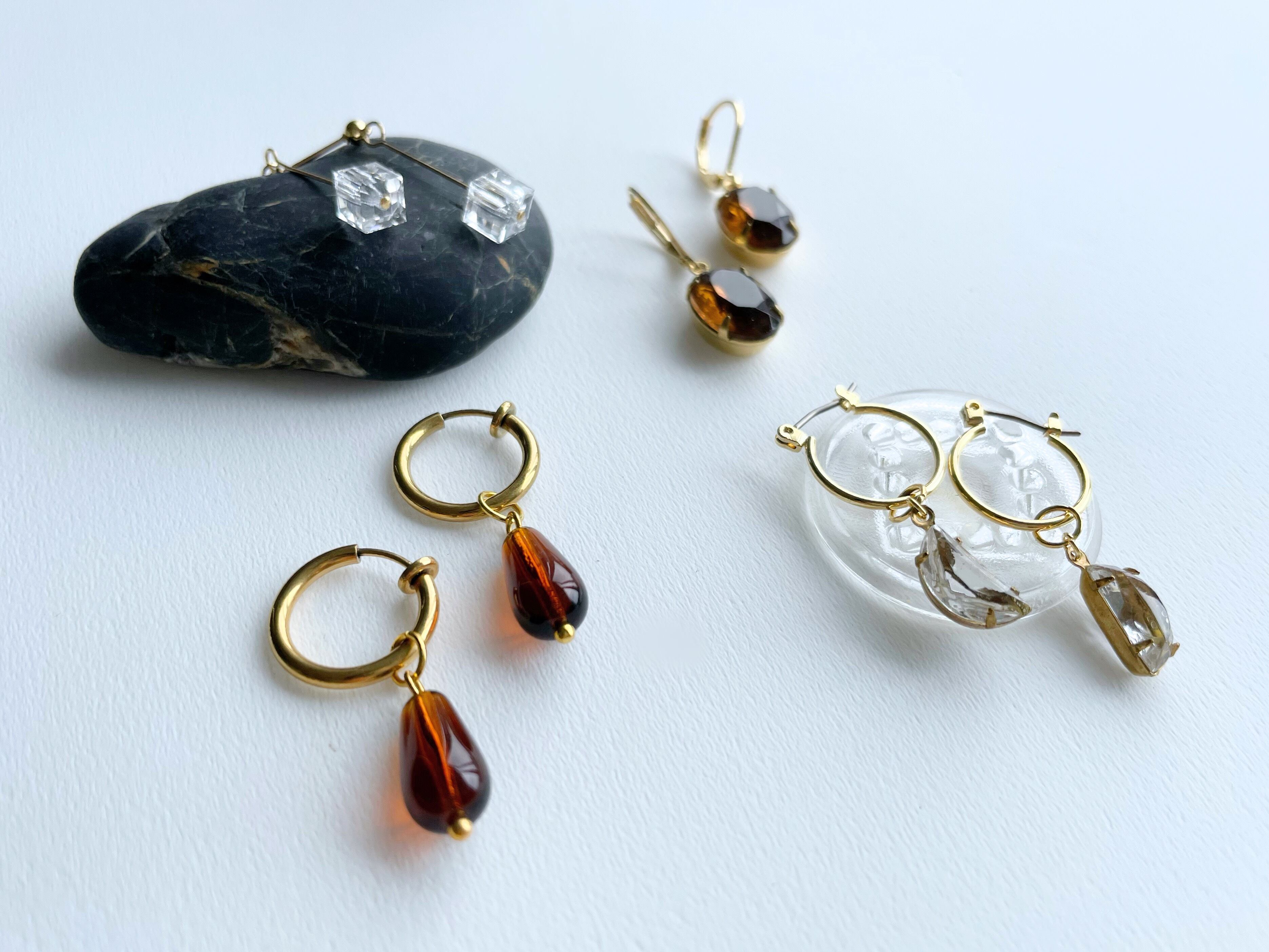 ピアスやイヤリングの金具は数種ご用意しておりますので、