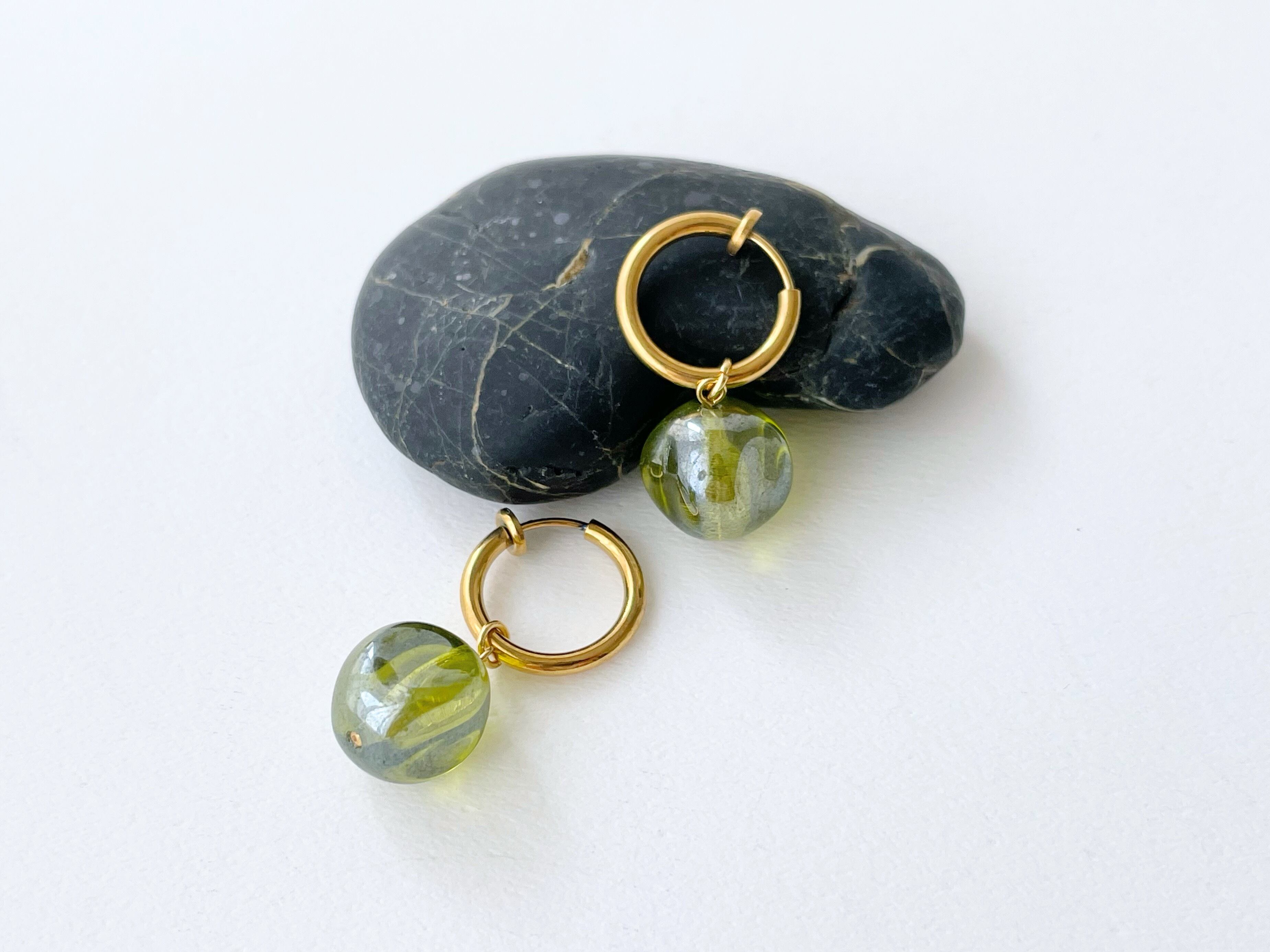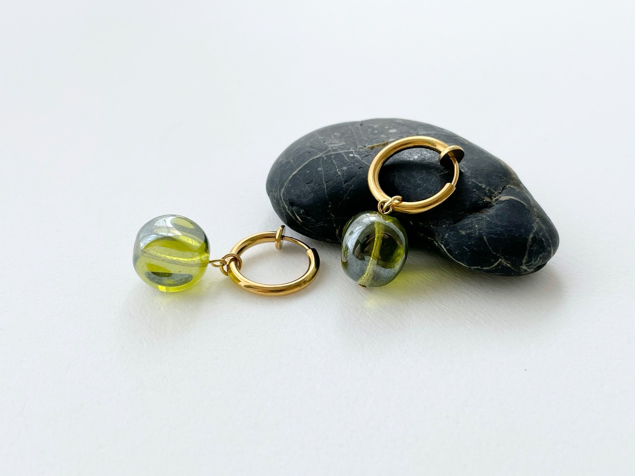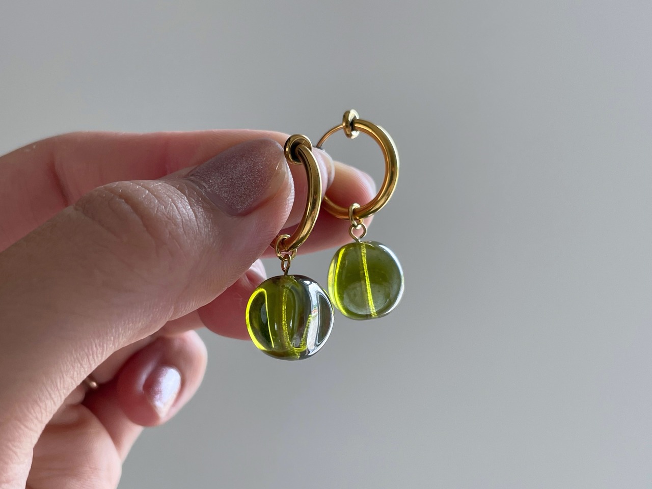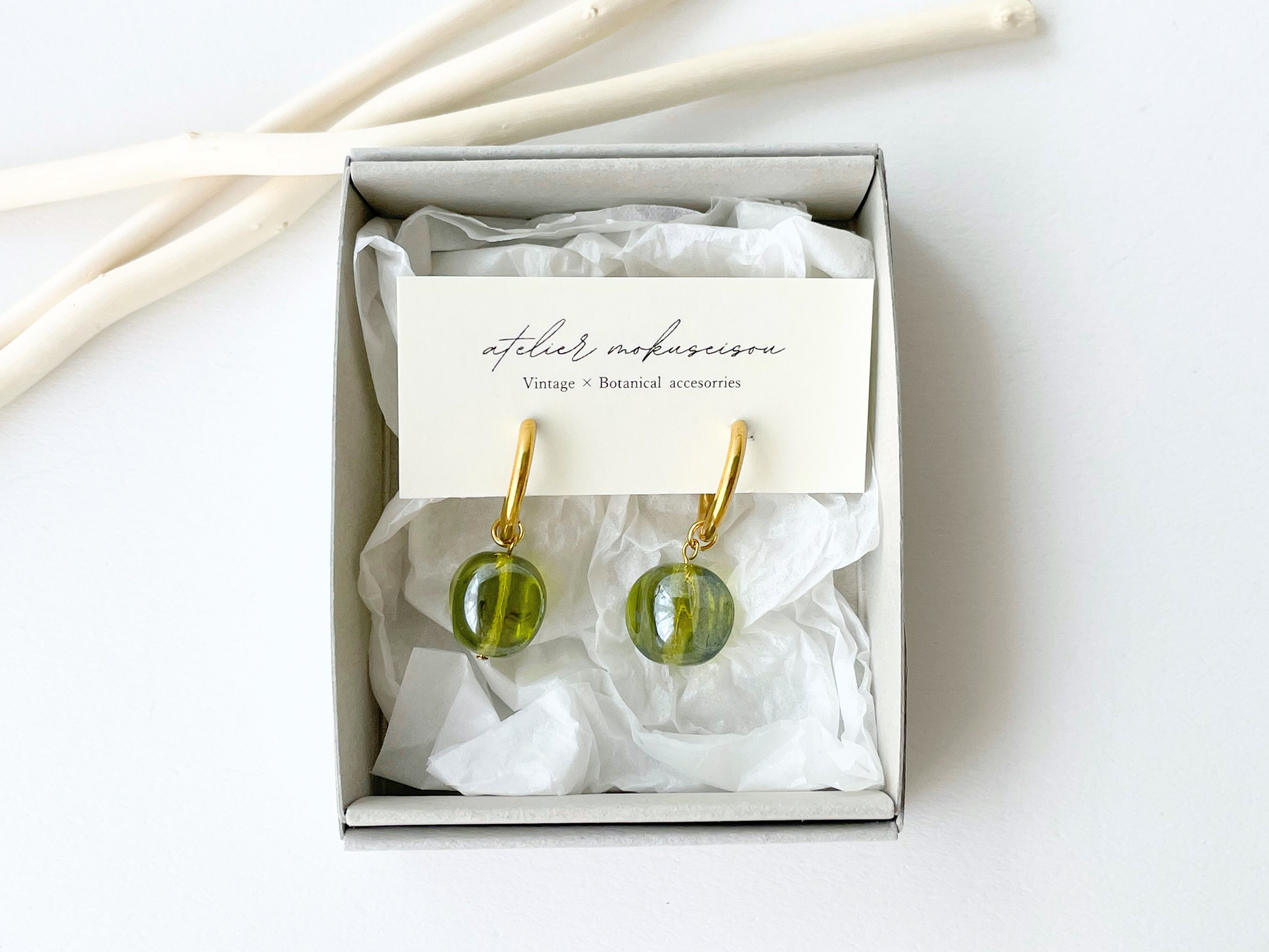 【 drops 】ヴィンテージビーズのシンプルなピアス・イヤリング/グリーン/チェコ/ペリドット/