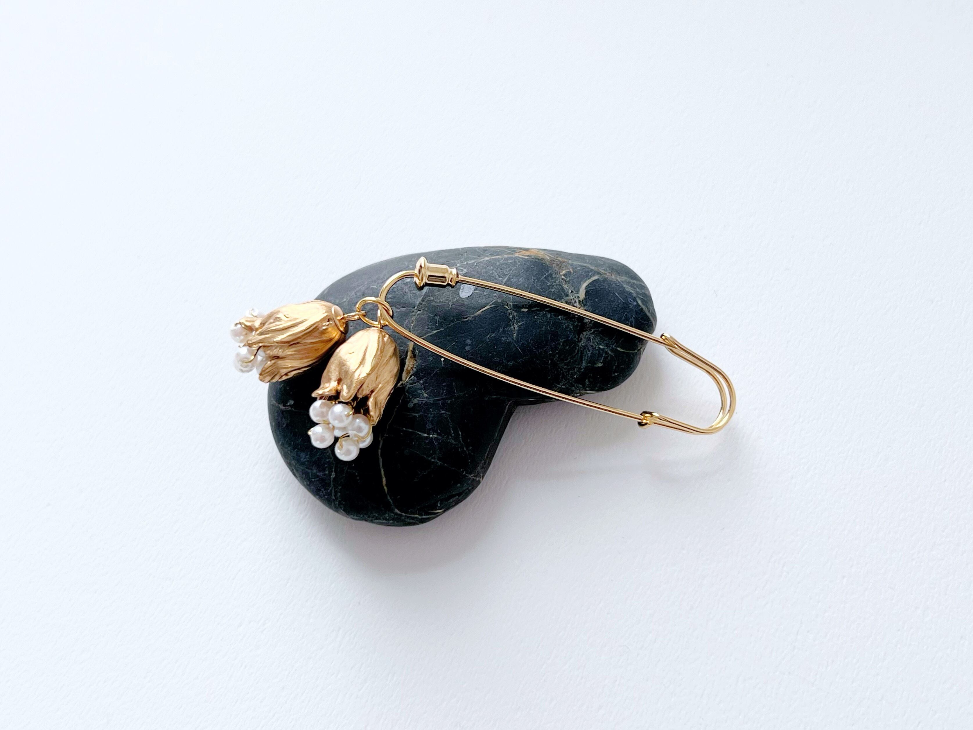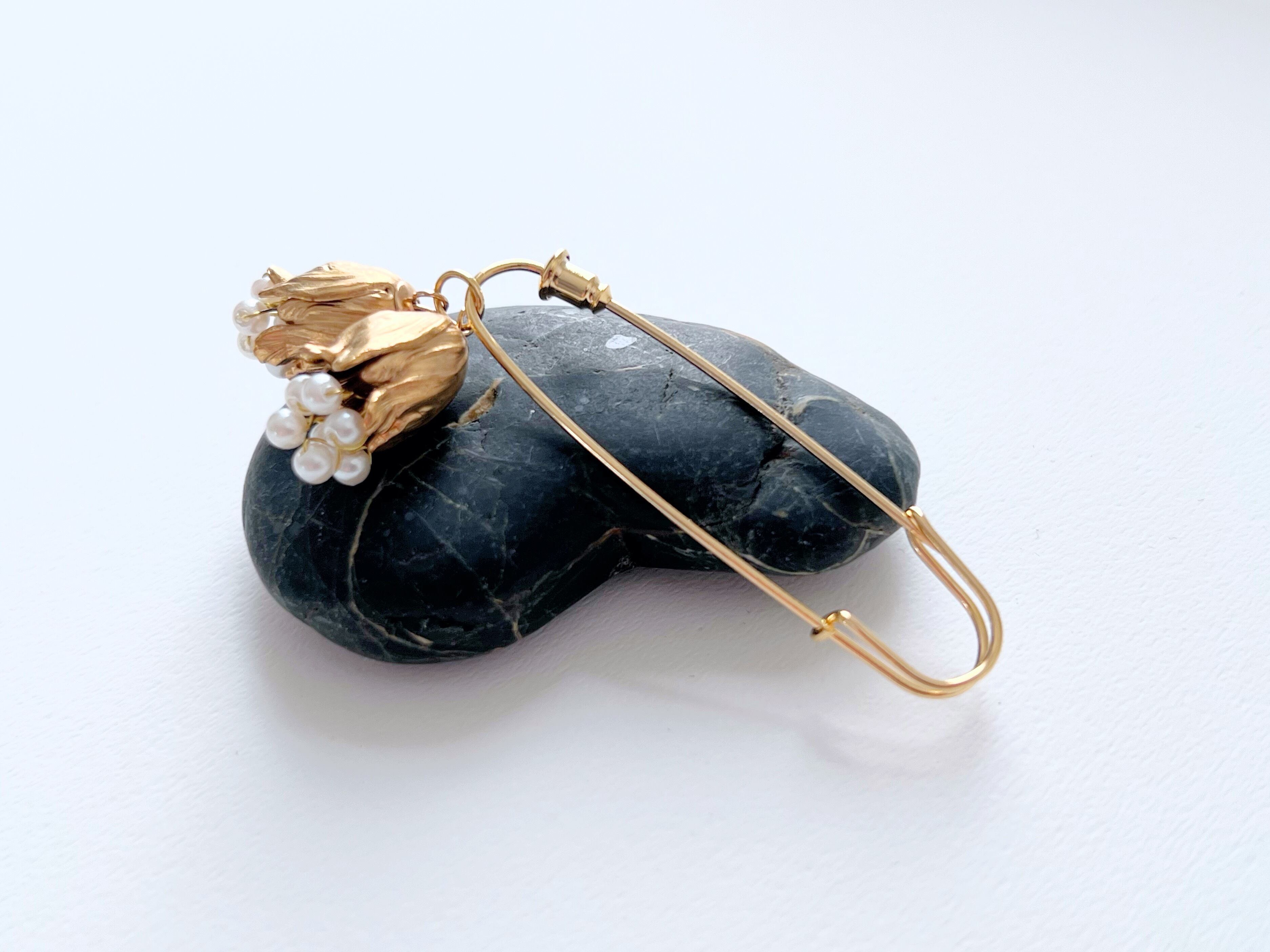 【 fée 】真鍮の蕾とヴィンテージベビーパールのブローチ・ストールピン
