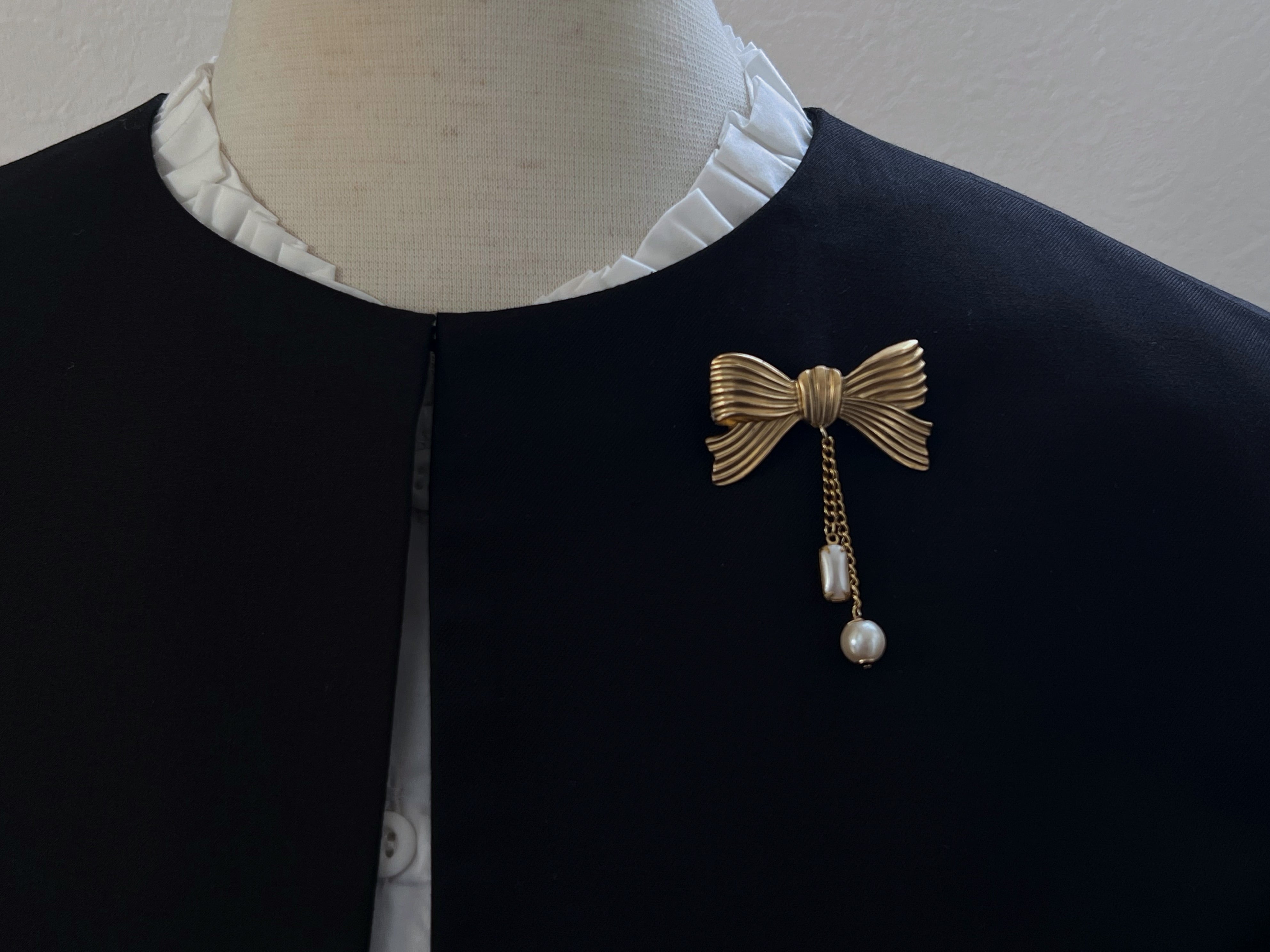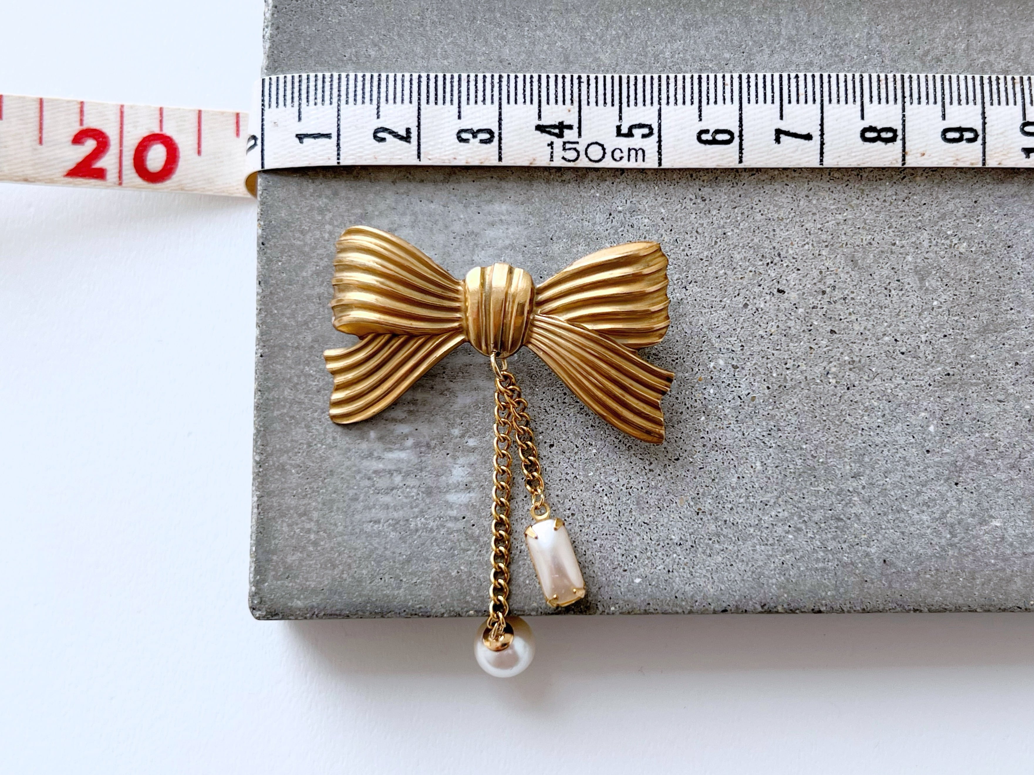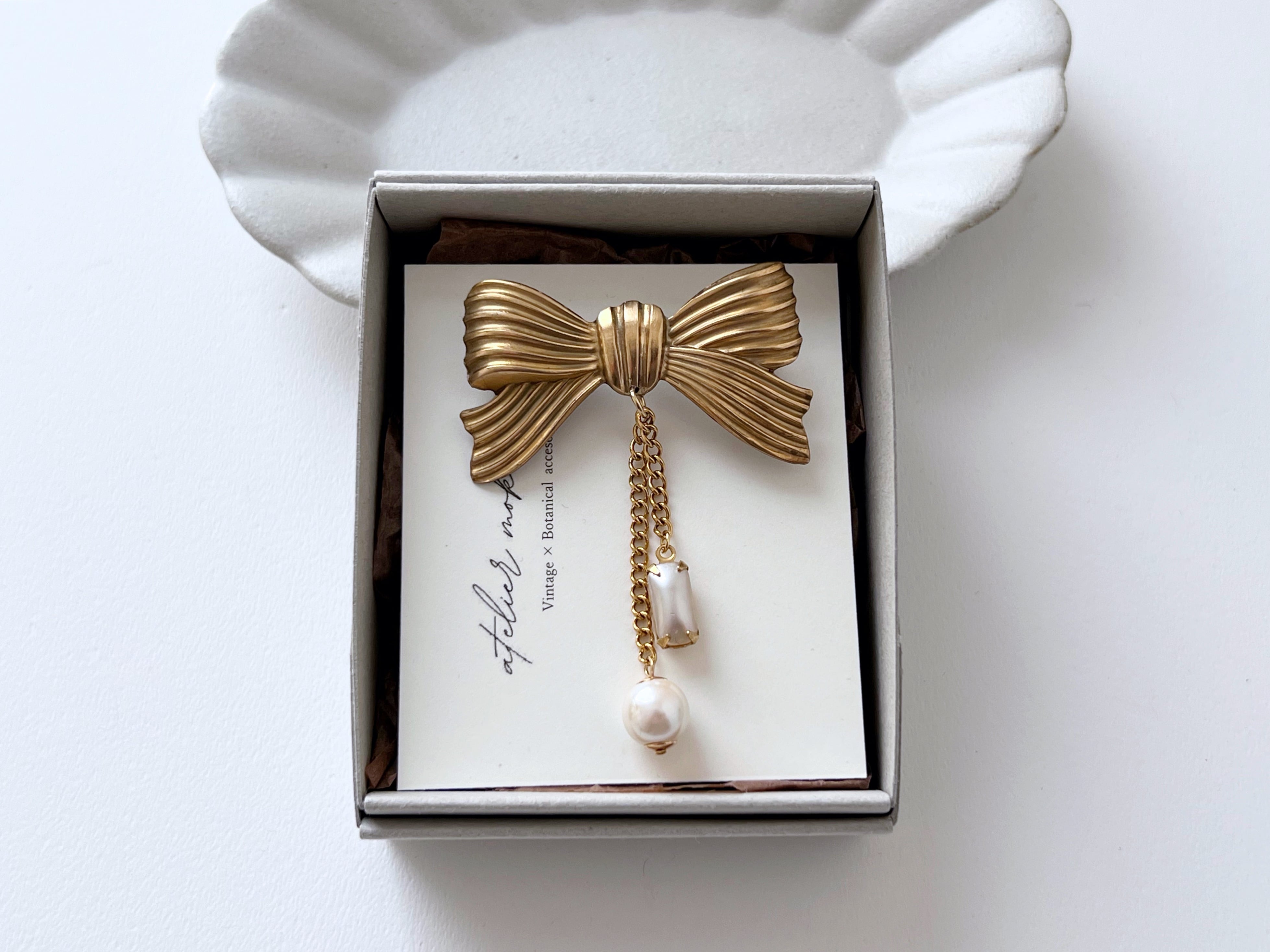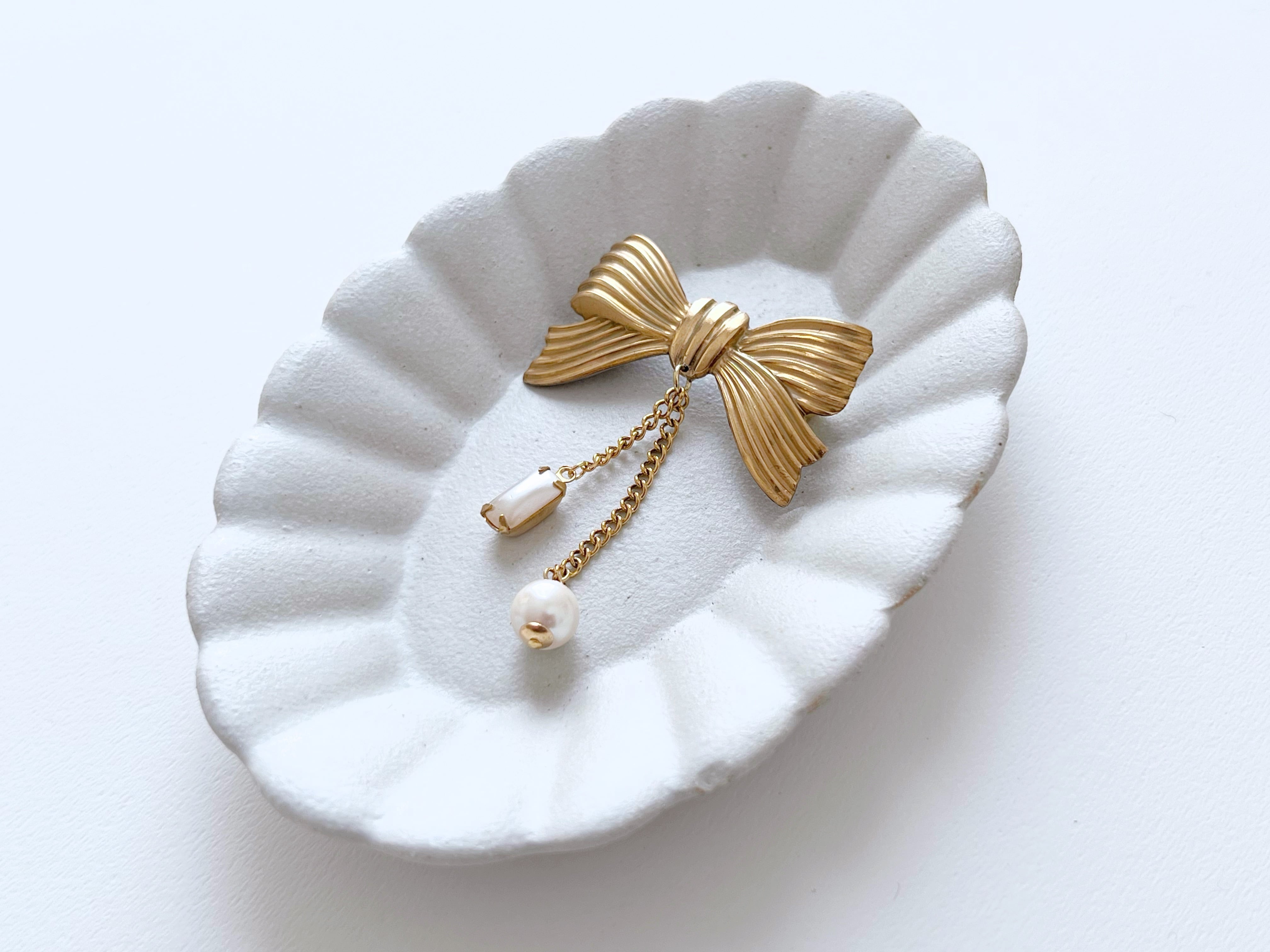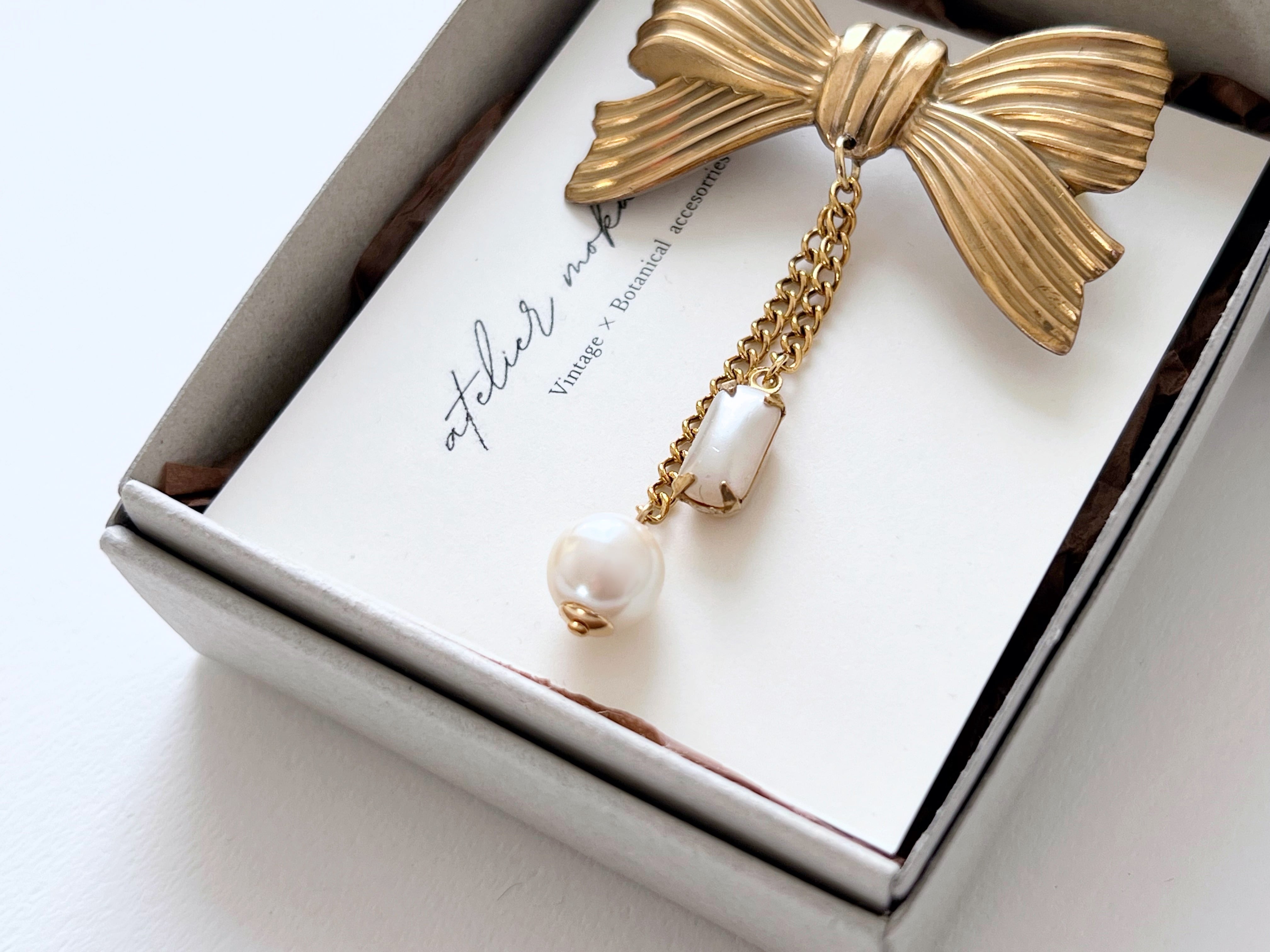 【 nouer 】真鍮リボンとヴィンテージパールのブローチ/フォーマル/ギフト/オケージョン/卒業/入学