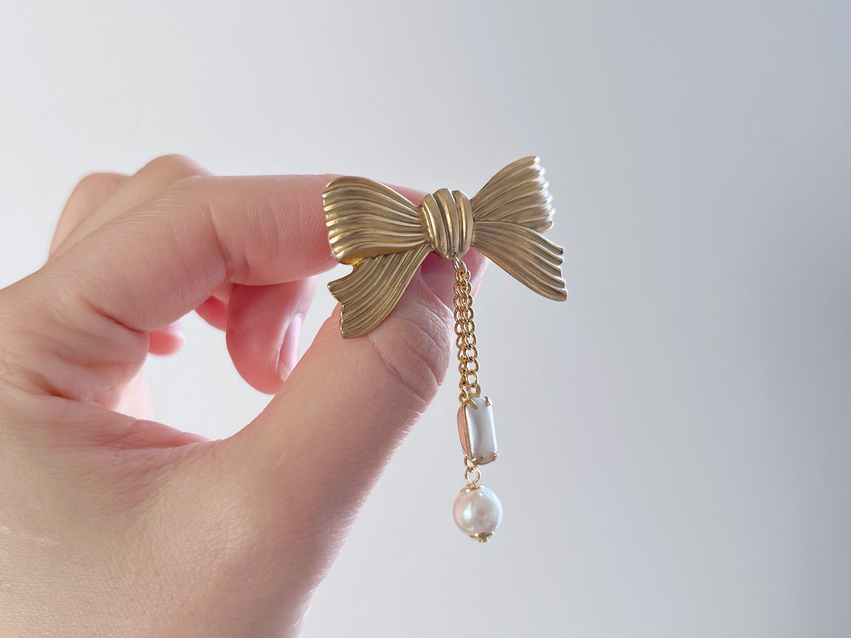 真鍮のリボンと揺れるパールの